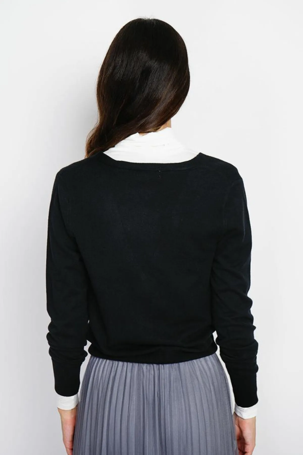 Cardigan col V classique tricotage en 3 fils à manches longues