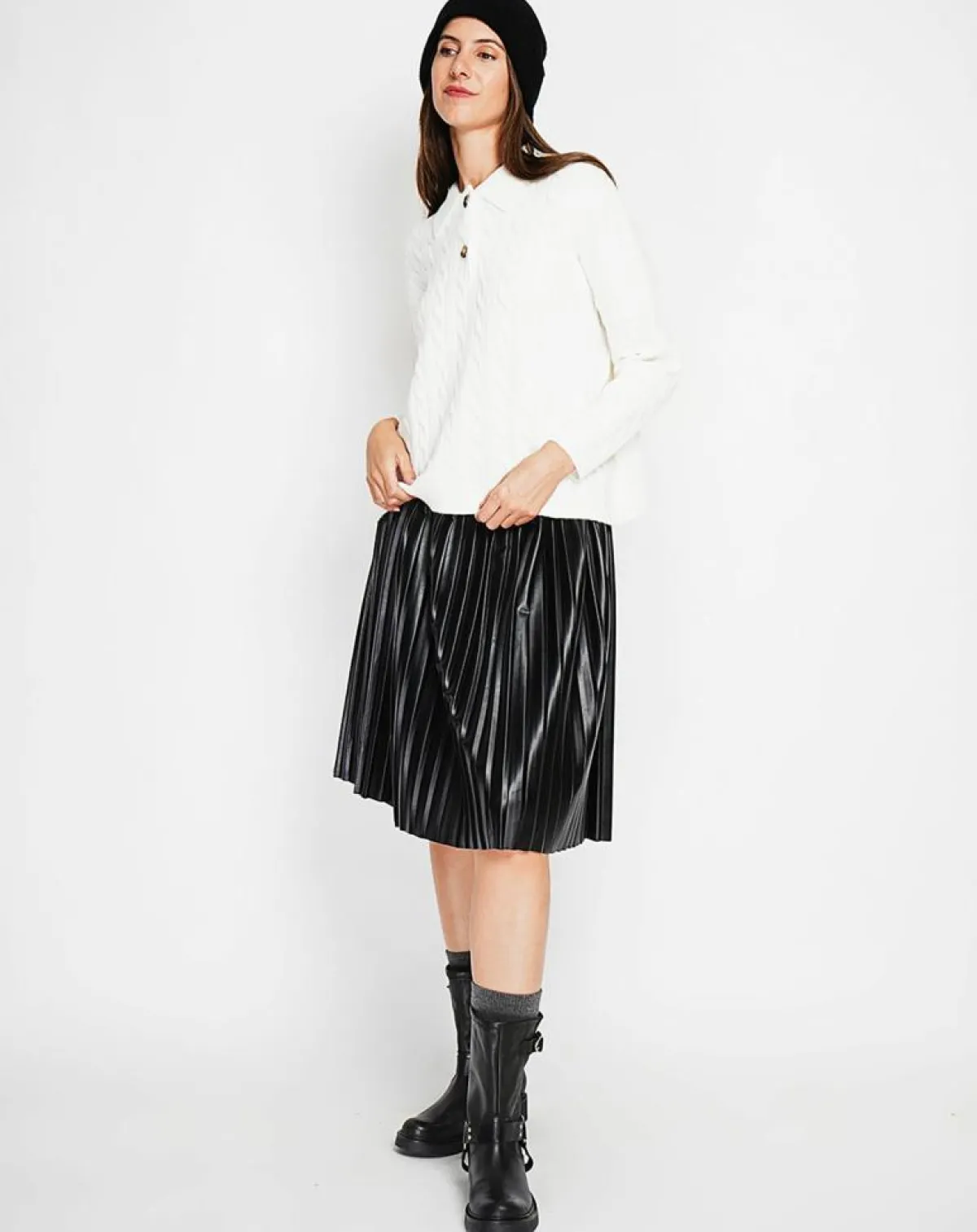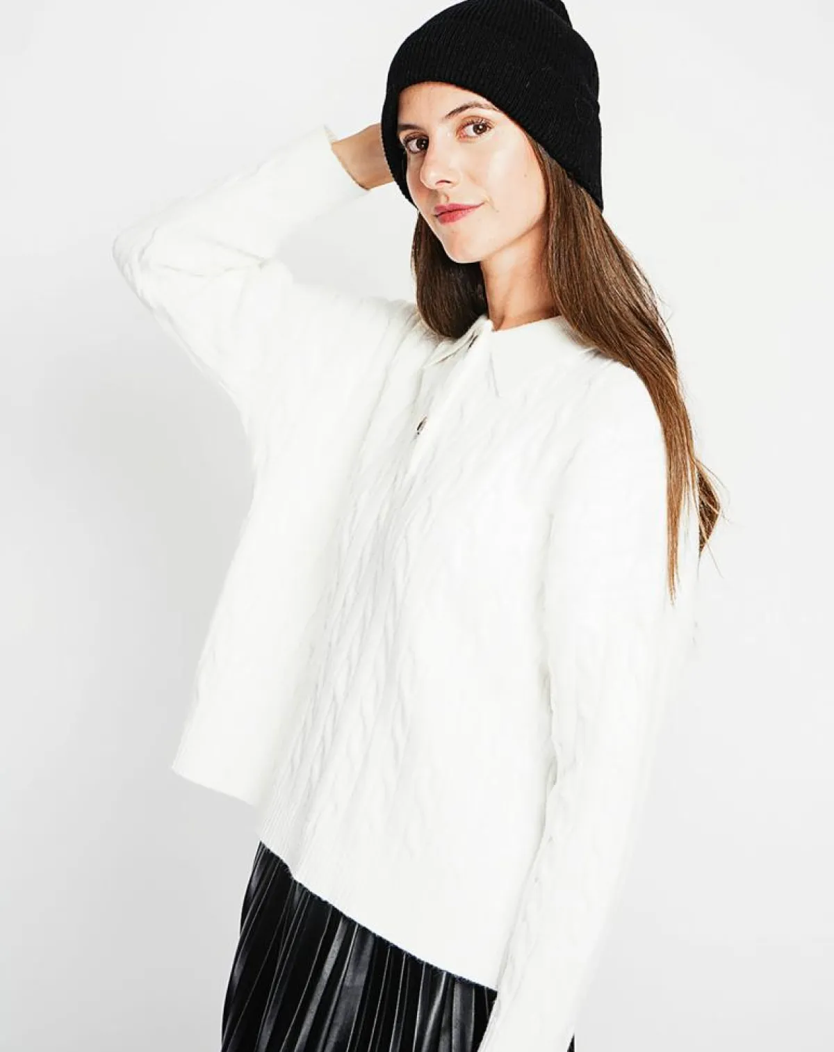 Pull col polo torsade Coupe oversize à manches longues