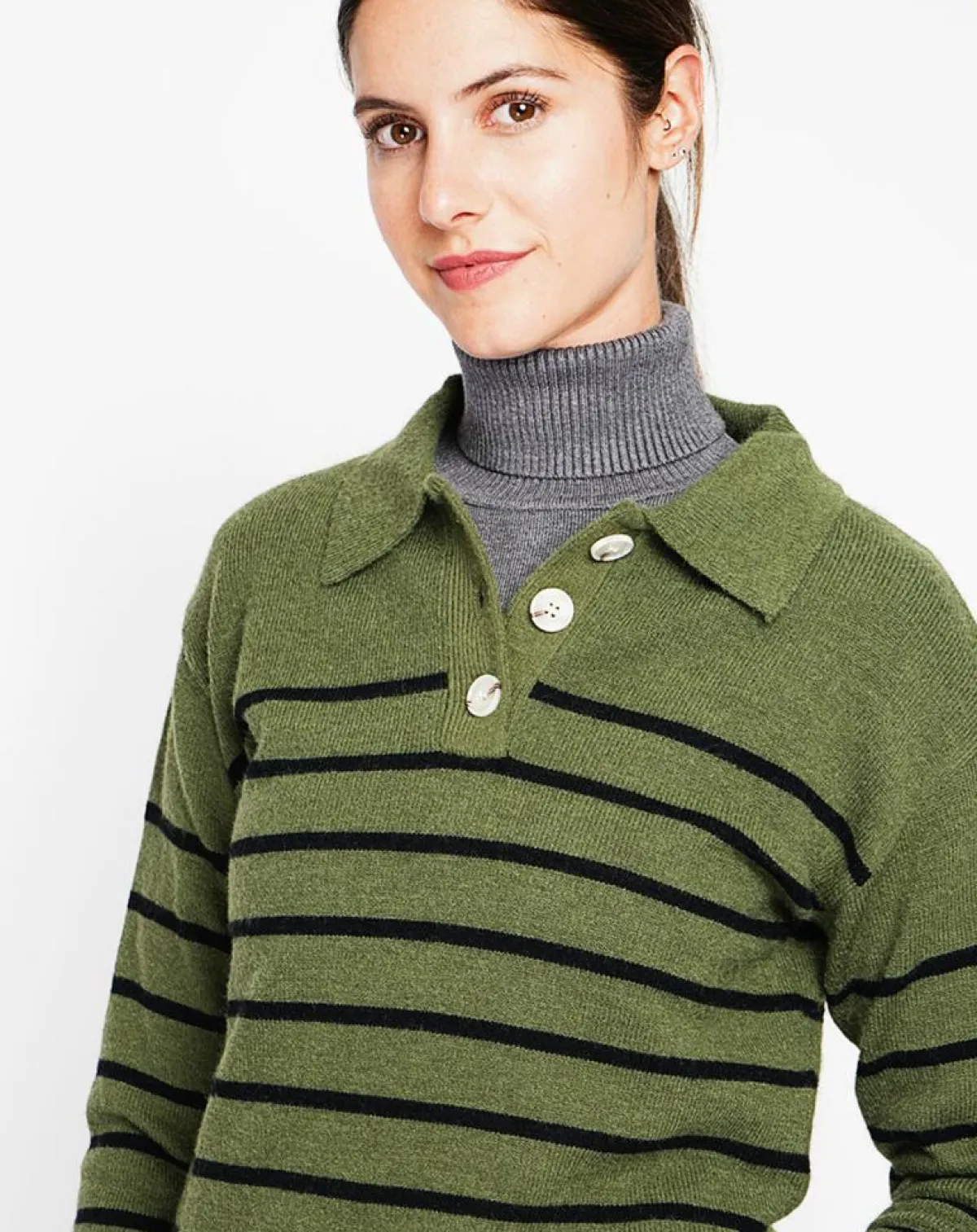 Pull col polo marinière coupe oversize à manches longues
