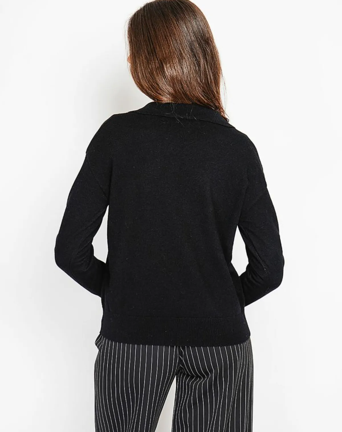 Pull col polo en V Bords côtelés Coupe oversize à manches longues
