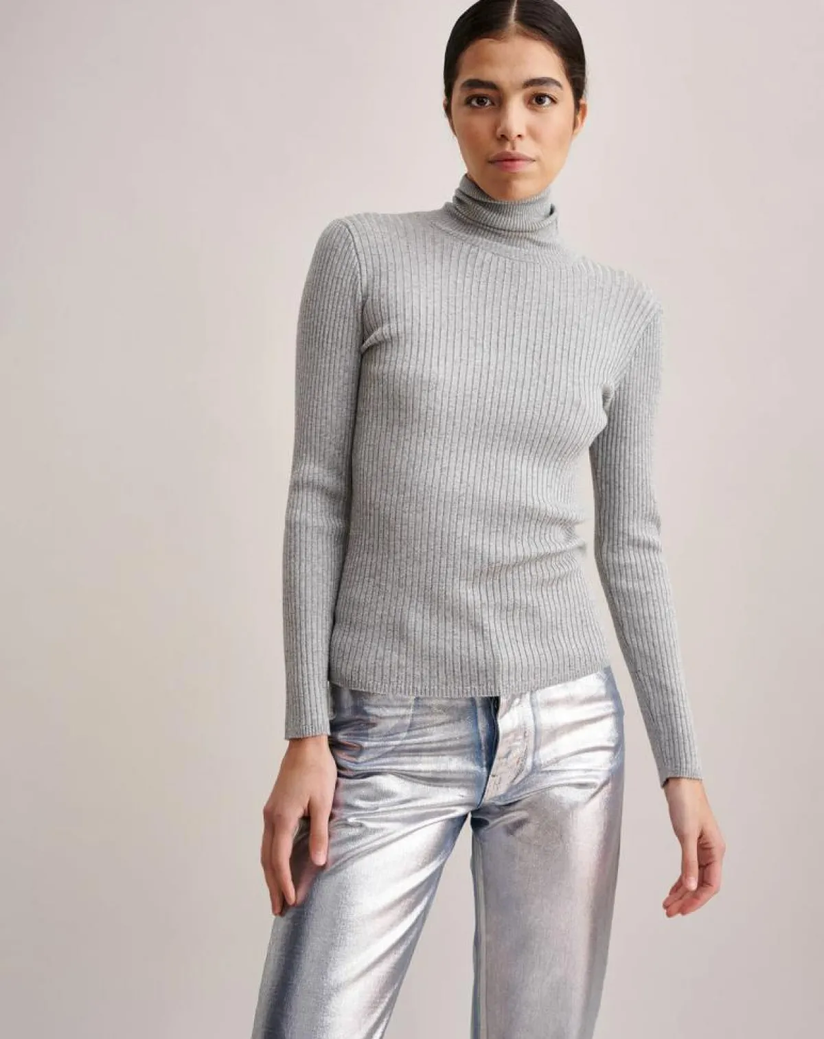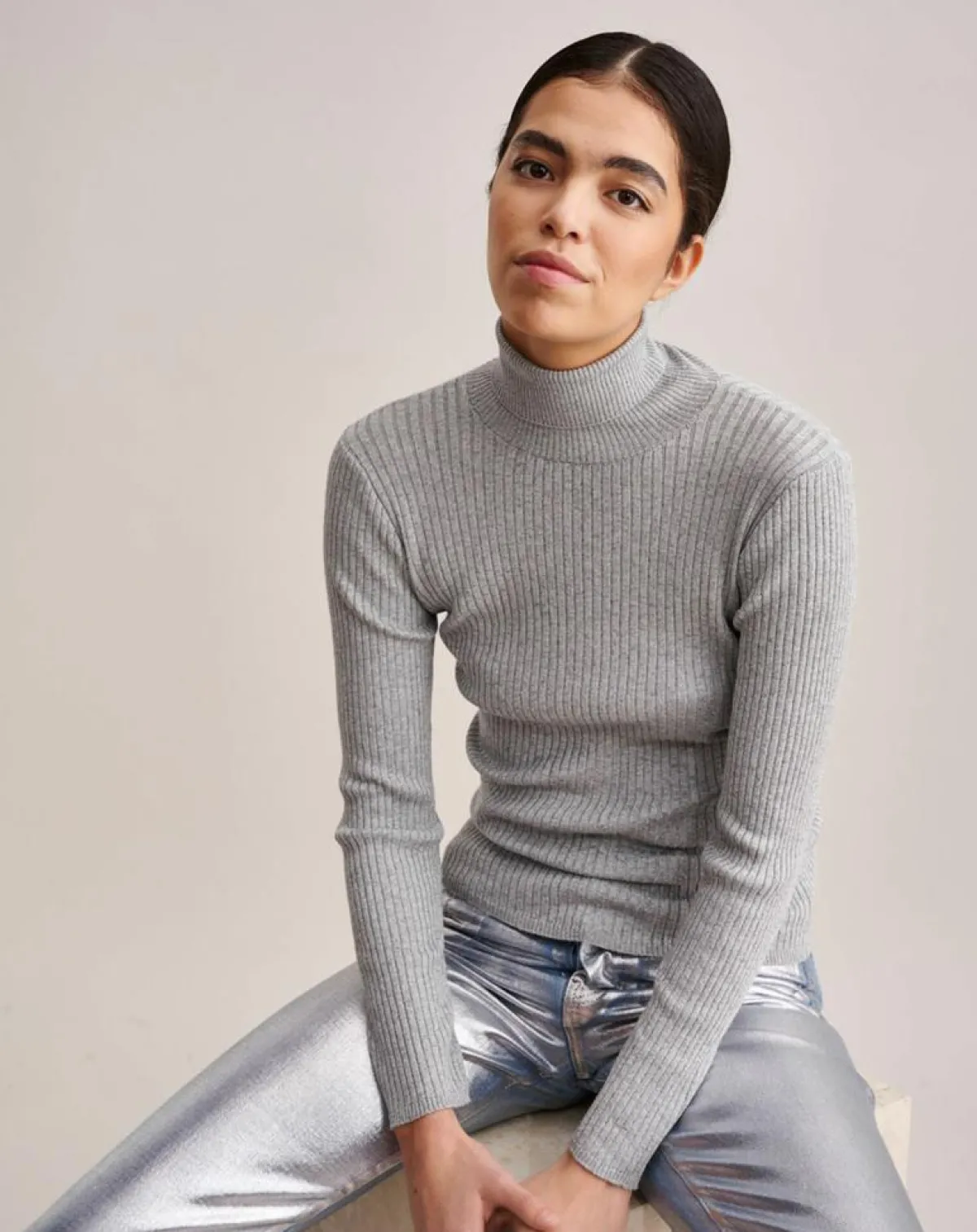 Le métallique, c’est chic ! Anoy est un col roulé argenté qui donnera de l’éclat à vos tenues hivernales