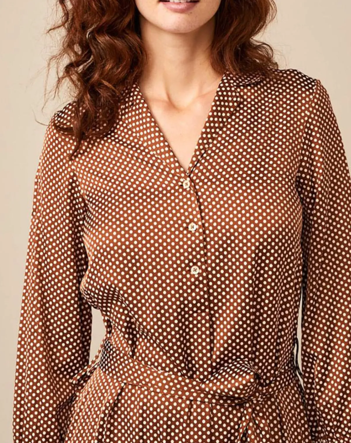 On aime cette version en viscose fluide et l’imprimé »polka dot ».