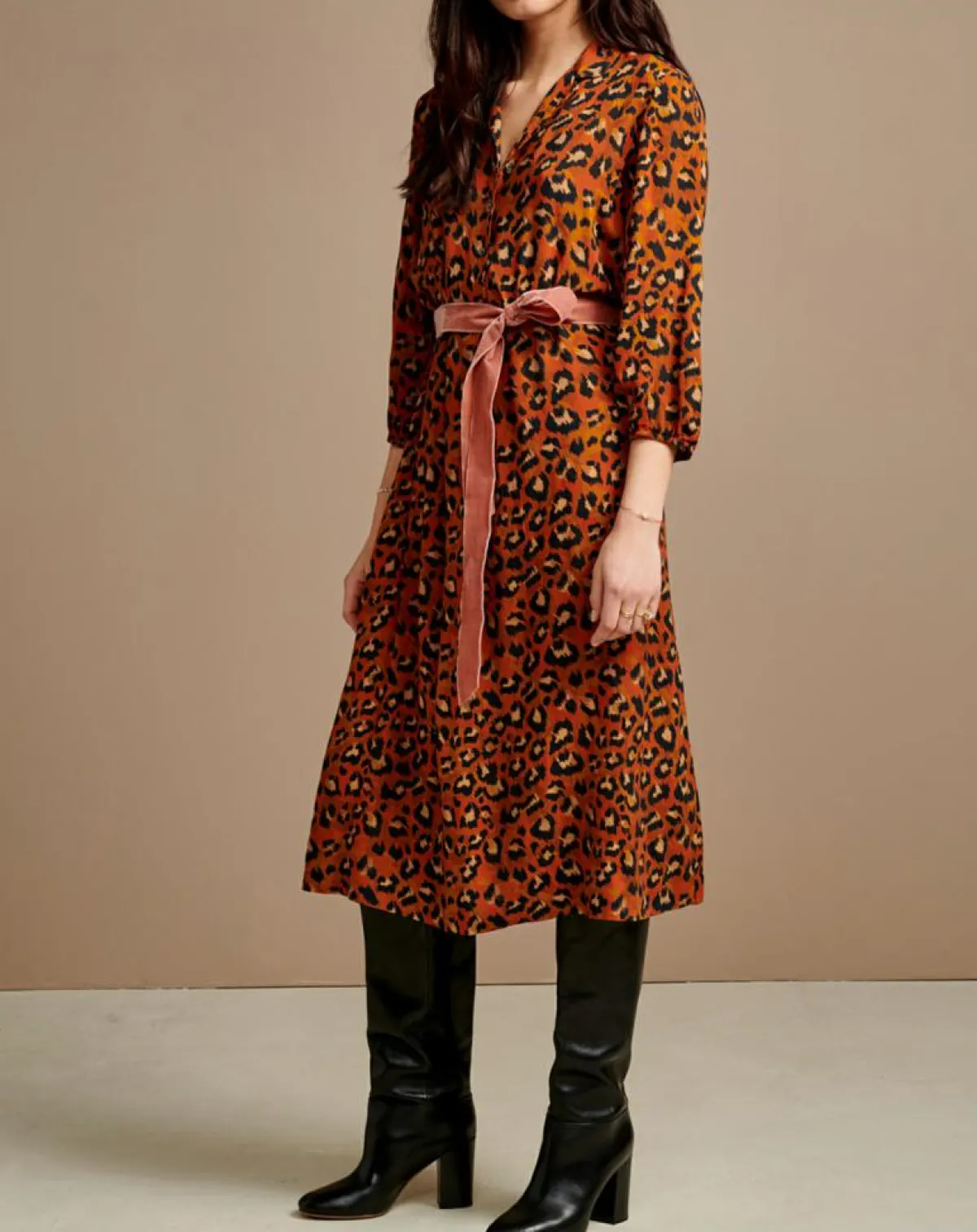 Simple mais super féminine, cette jolie robe orange en viscose de longueur midi deviendra un incontournable de votre garde-robe pour la prochaine saison