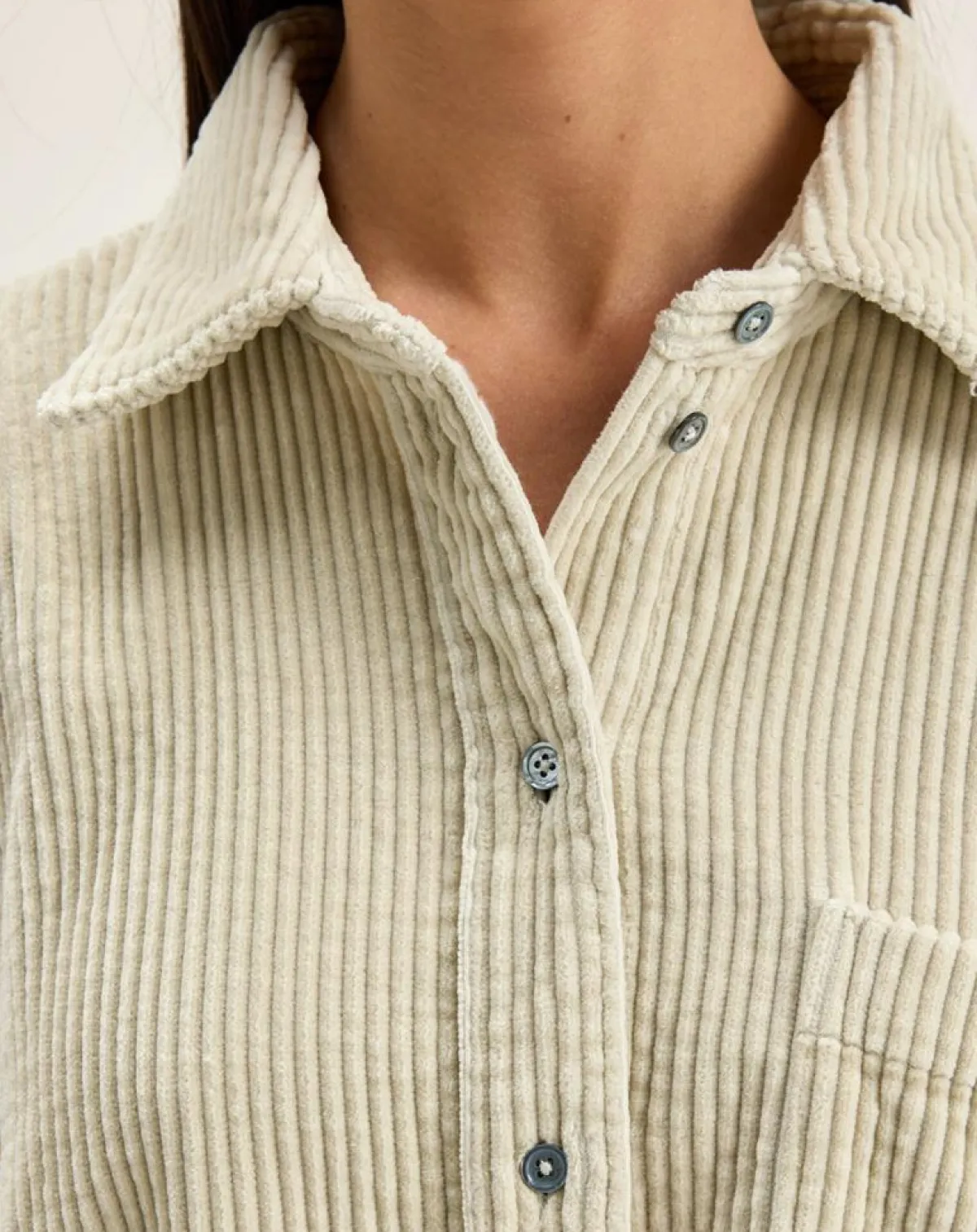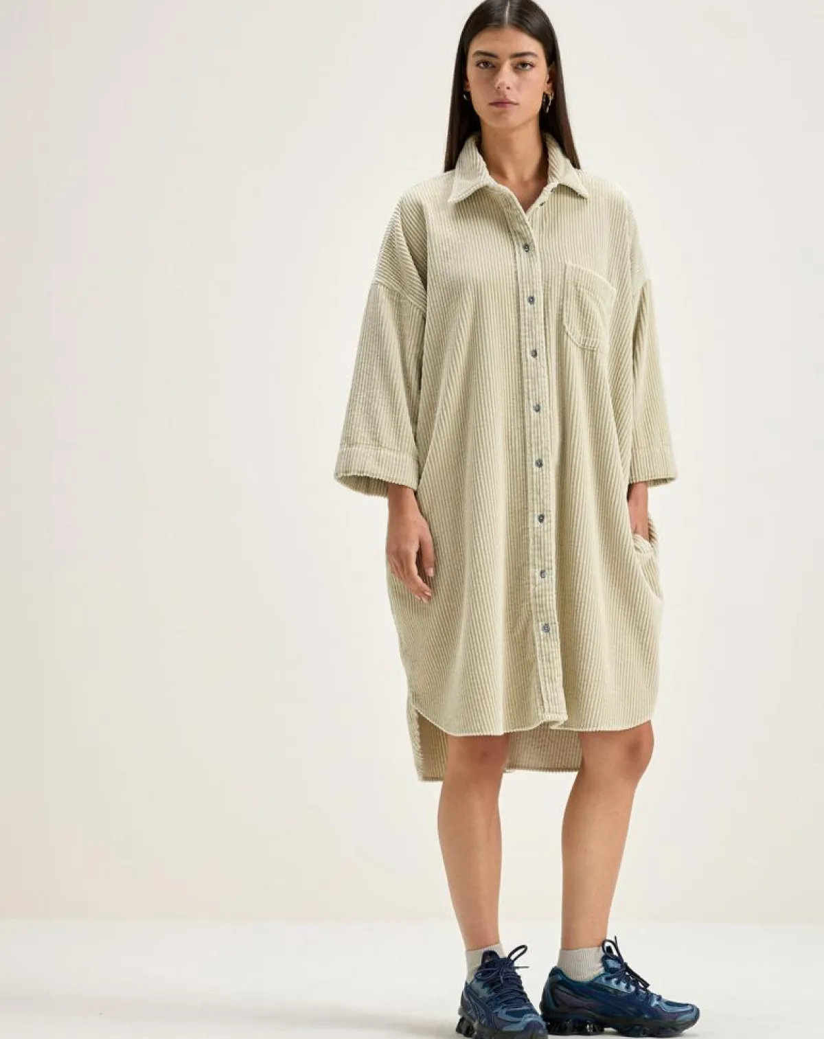 Robe-chemise oversize en velours de coton écru à côtes larges