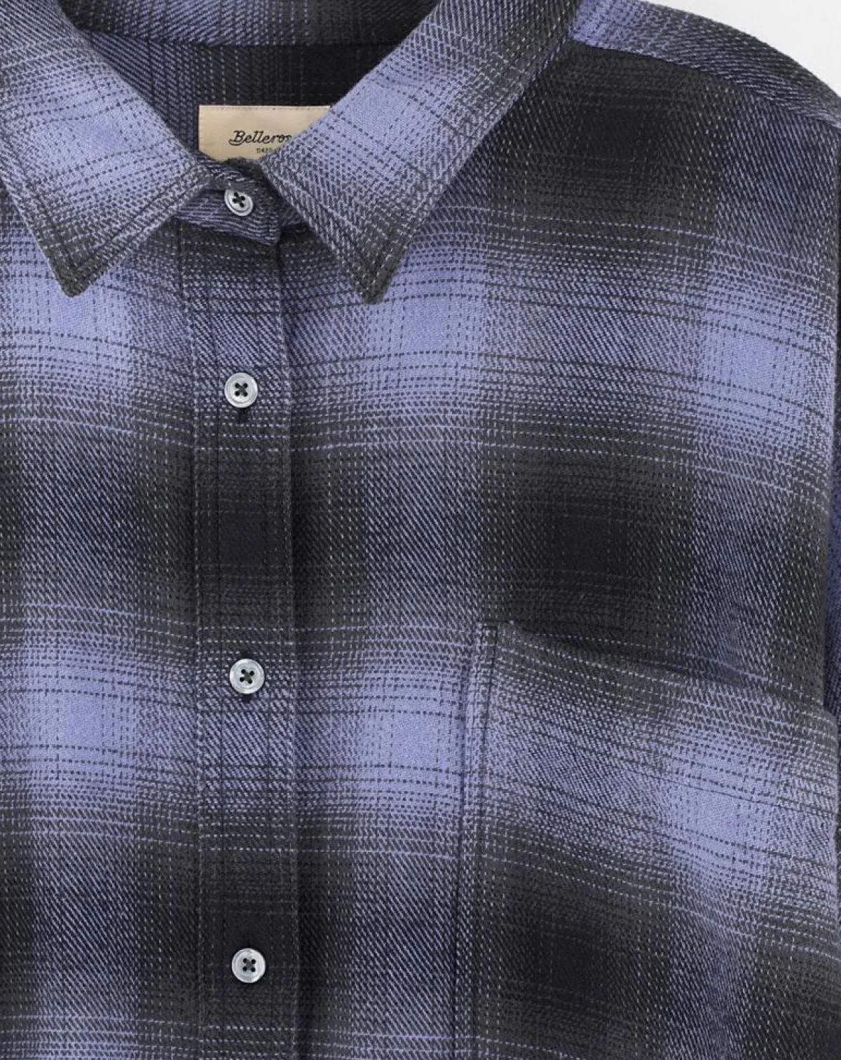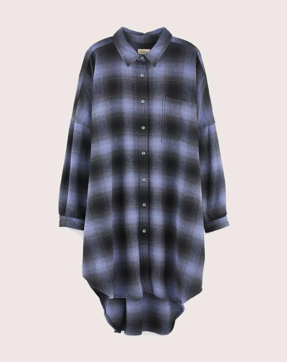 Robe chemise à manches longues, coupe oversize fabriquée en coton brossé à carreaux violets en ton sur ton