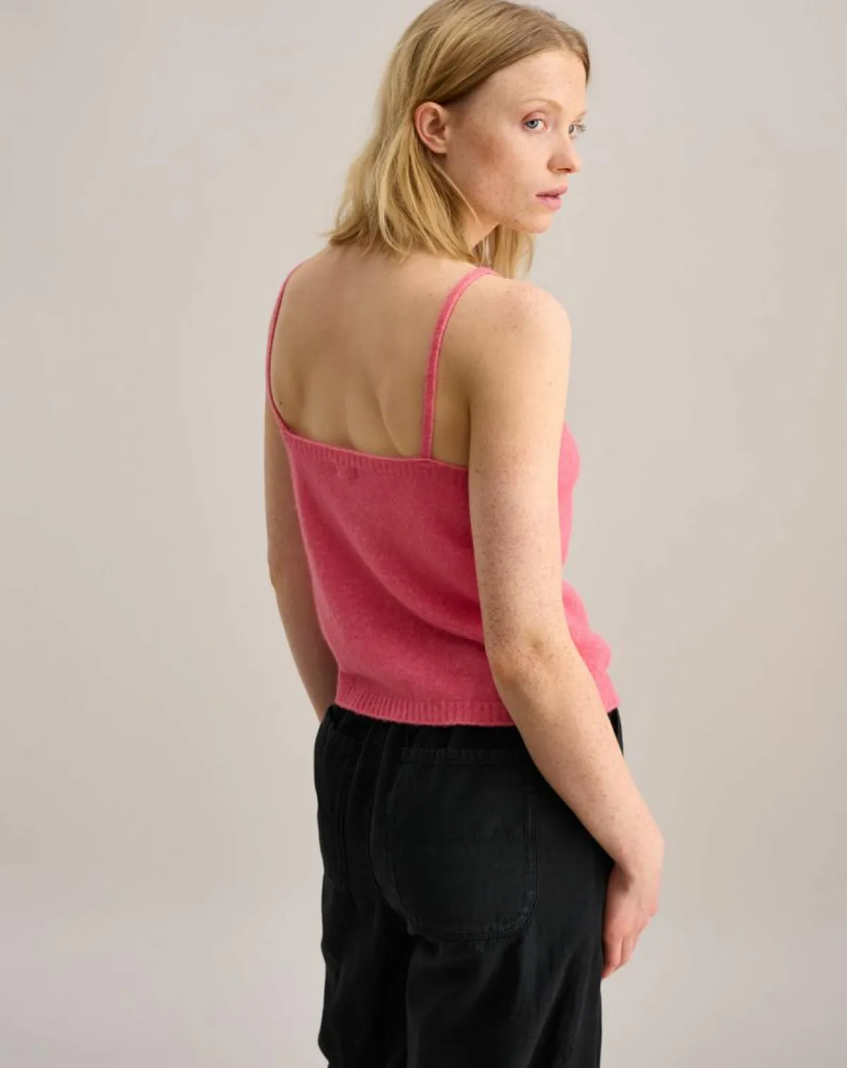 En laine et angora mélangés, ce débardeur tricoté présente une coupe ajustée avec une encolure en V et des bretelles spaghetti