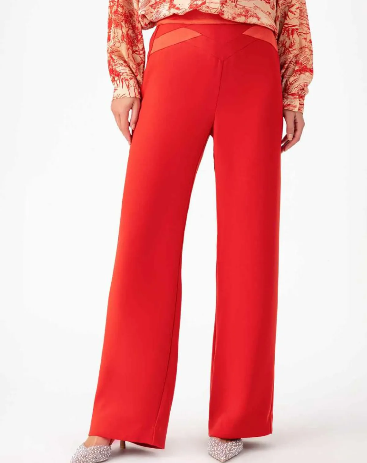 Séduisant avec son style raffiné et sa couleur éblouissante et nuancée, le pantalon JODIE rouge orangé adopte des finitions résolument glamour.