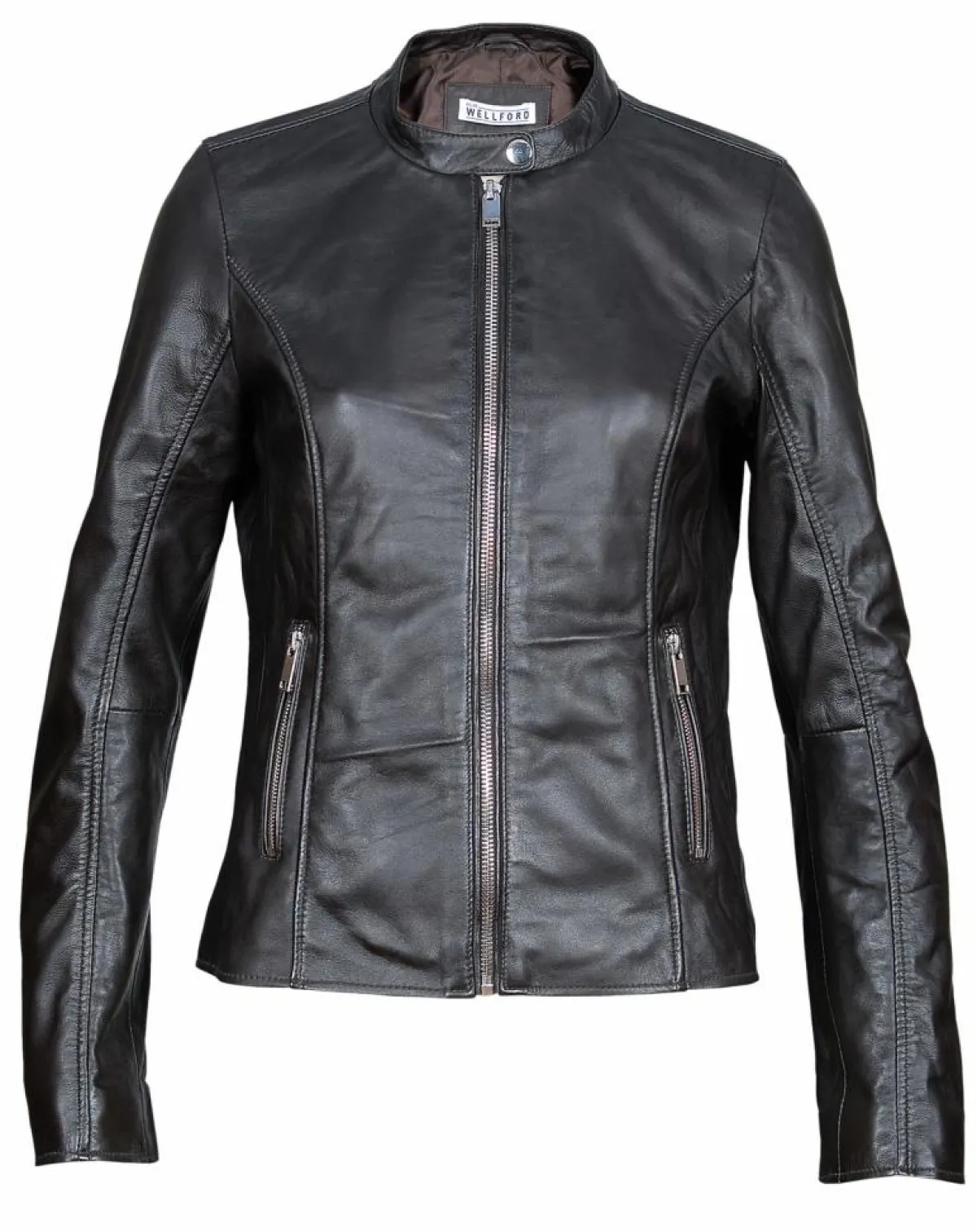 Blue Wellford Vestes, Blousons|Veste en Cuir Alazeia gris foncé