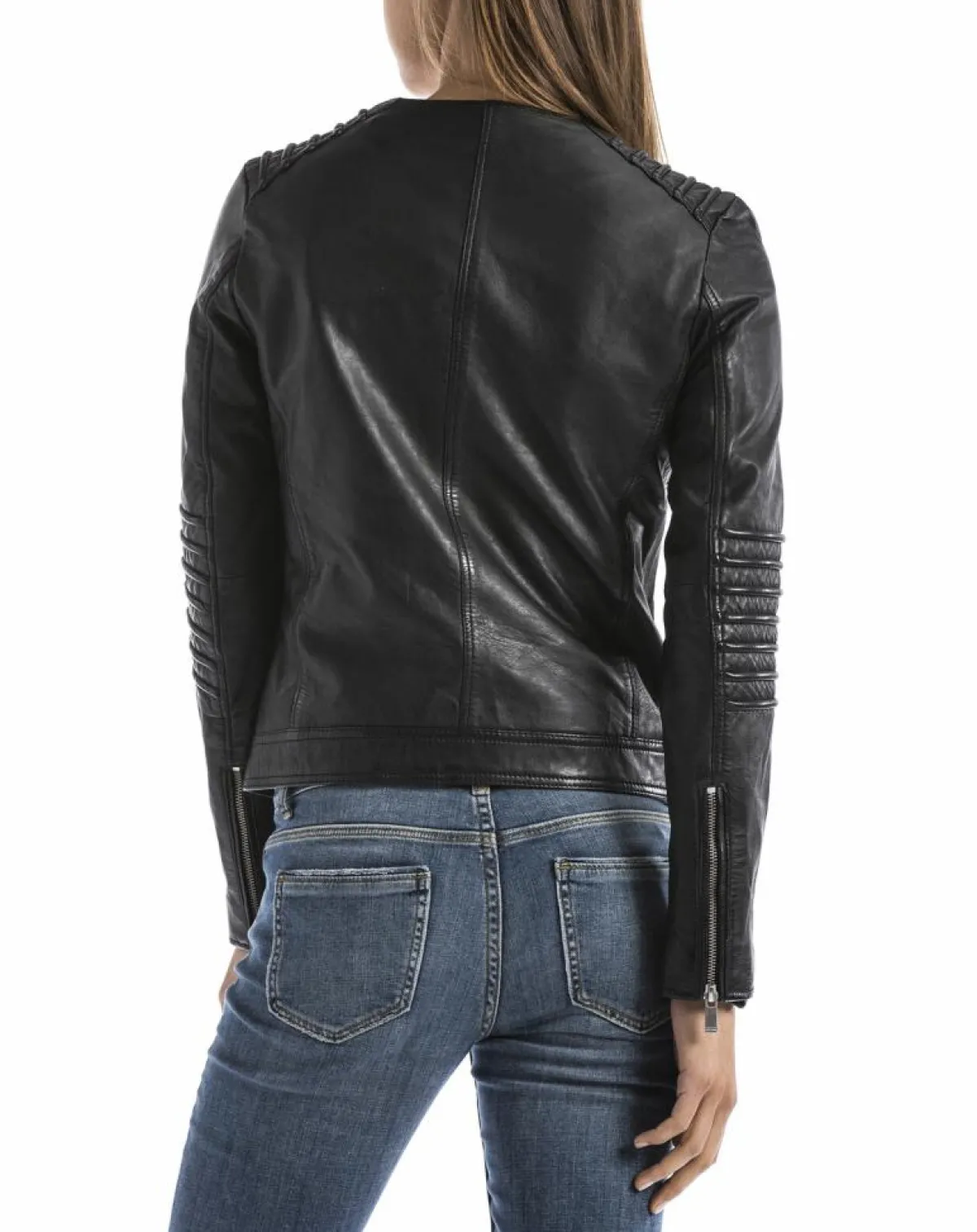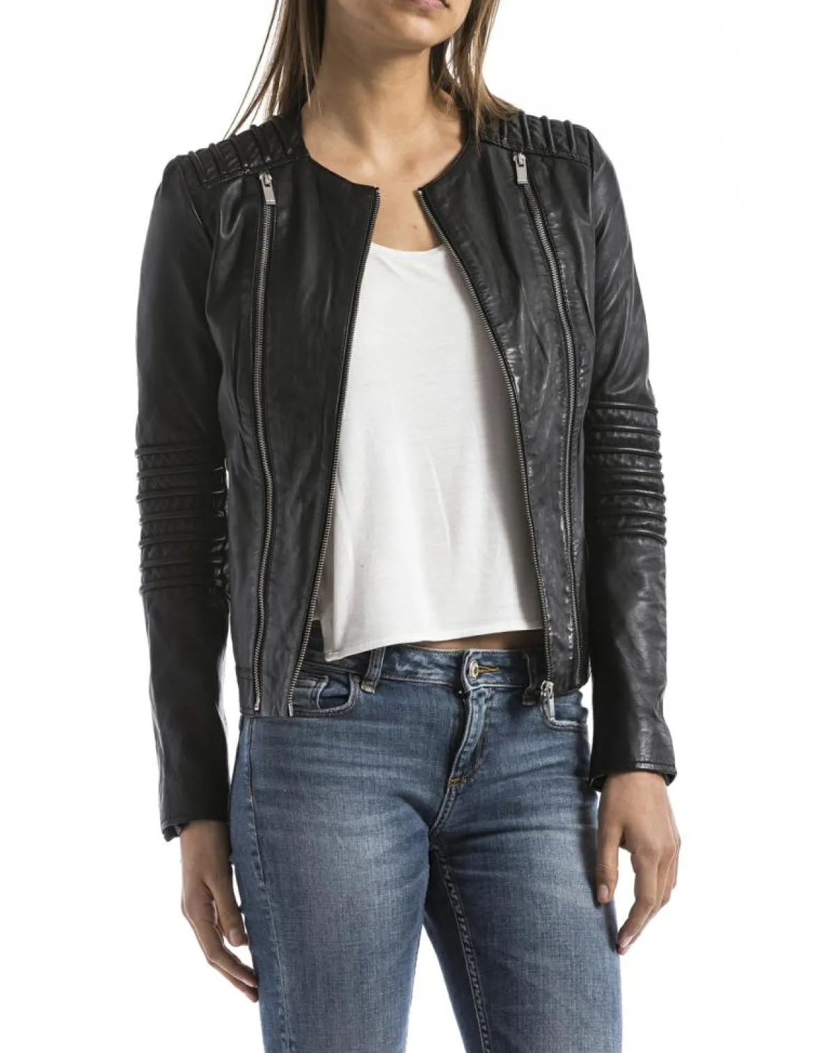 Blue Wellford Vestes, Blousons|Veste en Cuir Alazeia gris foncé