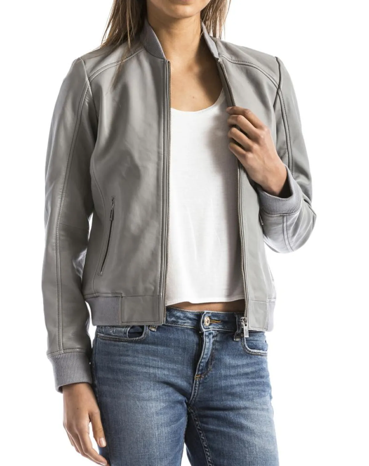 Blue Wellford Vestes, Blousons|Veste en Cuir Alazeia gris foncé