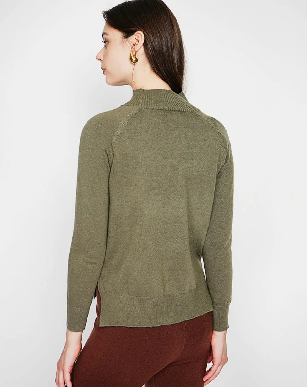 Pull col montant tricot fantaisie devant coupe oversize à manches longues