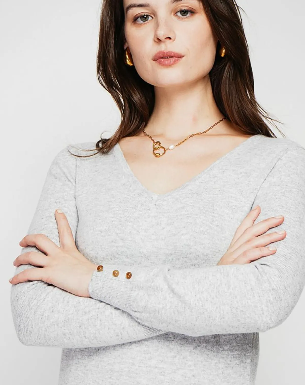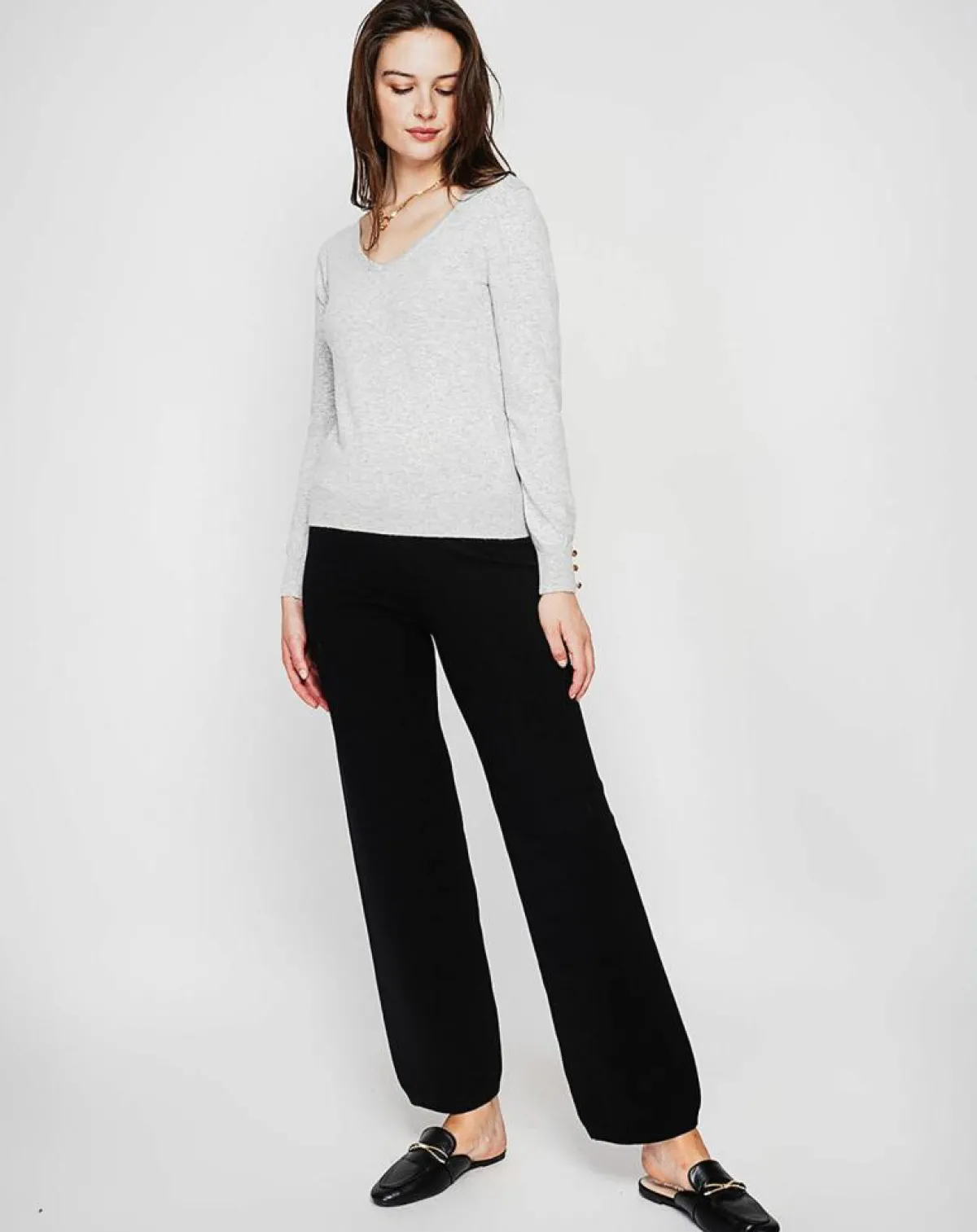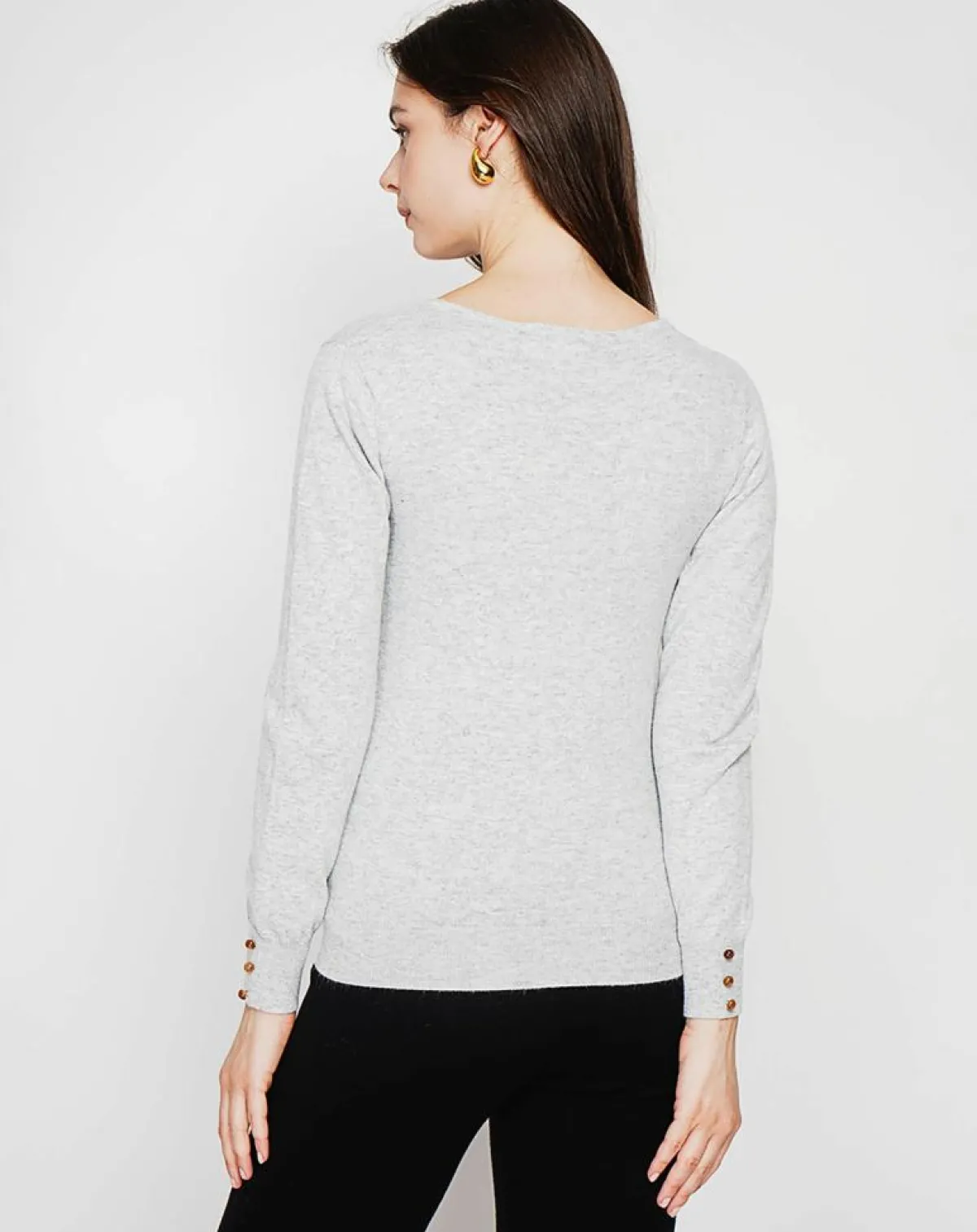 Pull col V classique tricotage en 2 fils à manches longues