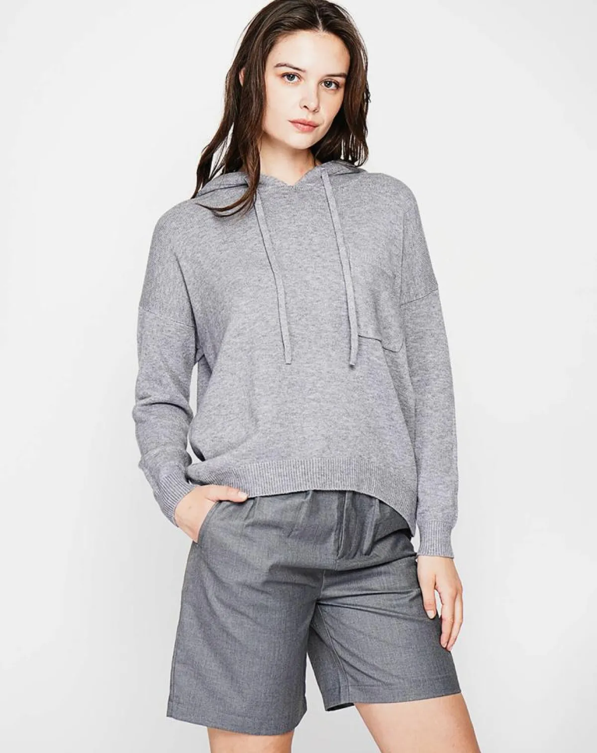 Pull à capuche poche plaquée poitrine à manches longues en 4 fils