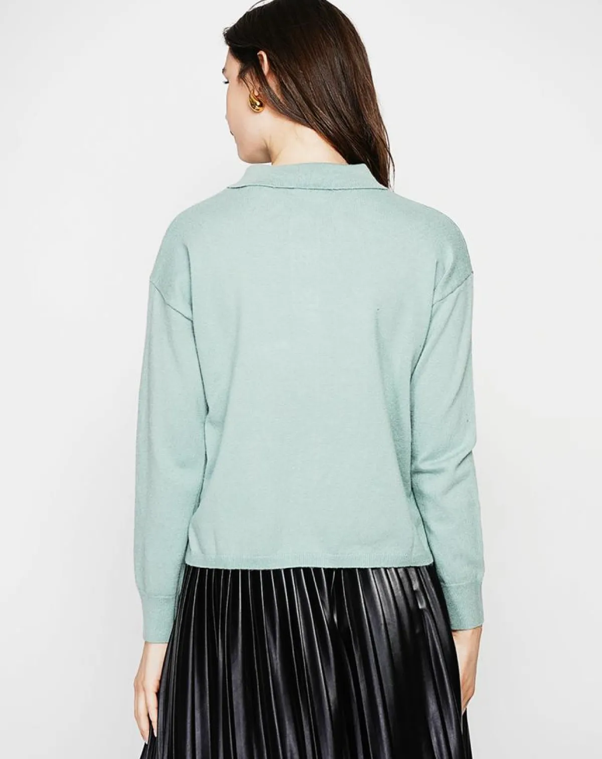 Pull col polo Bords côtelés Coupe oversize à manches longues