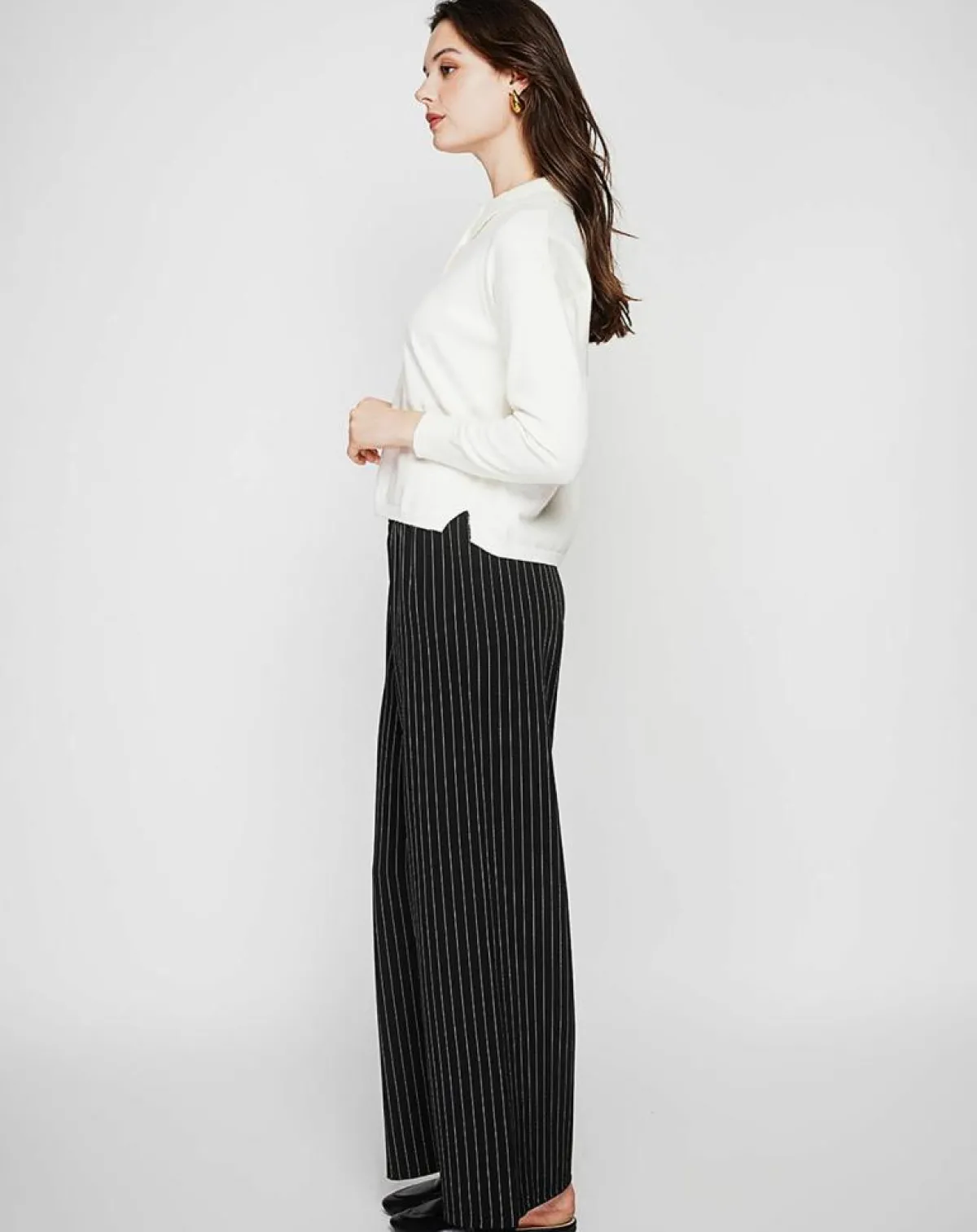 Pull col polo Bords côtelés Coupe oversize à manches longues