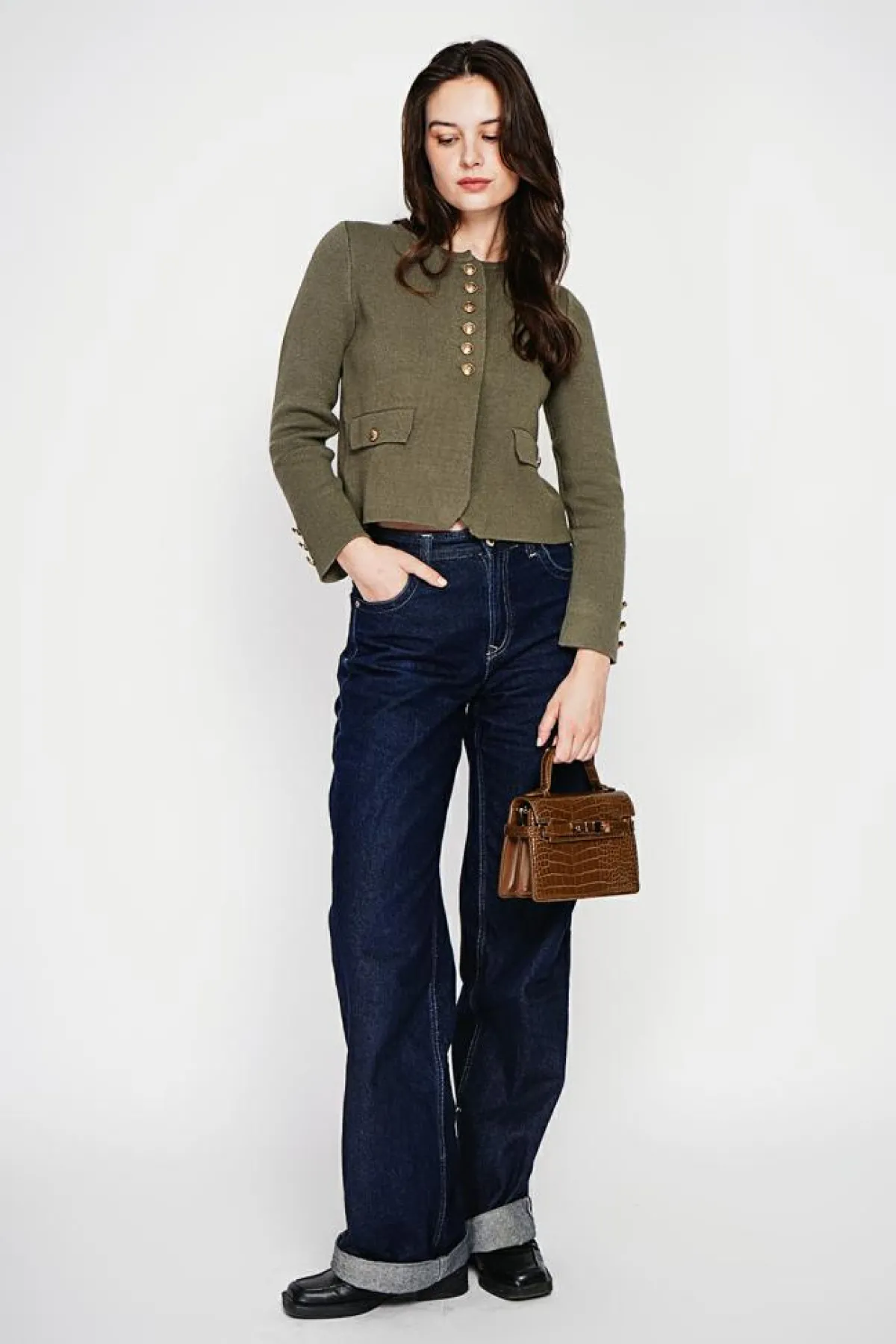 Blue Wellford Vestes, Blousons|Veste en Cuir Alazeia gris foncé