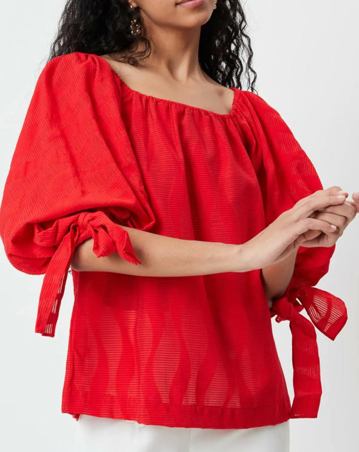 Blouse manches ballon en viscose mélangé, texturée
