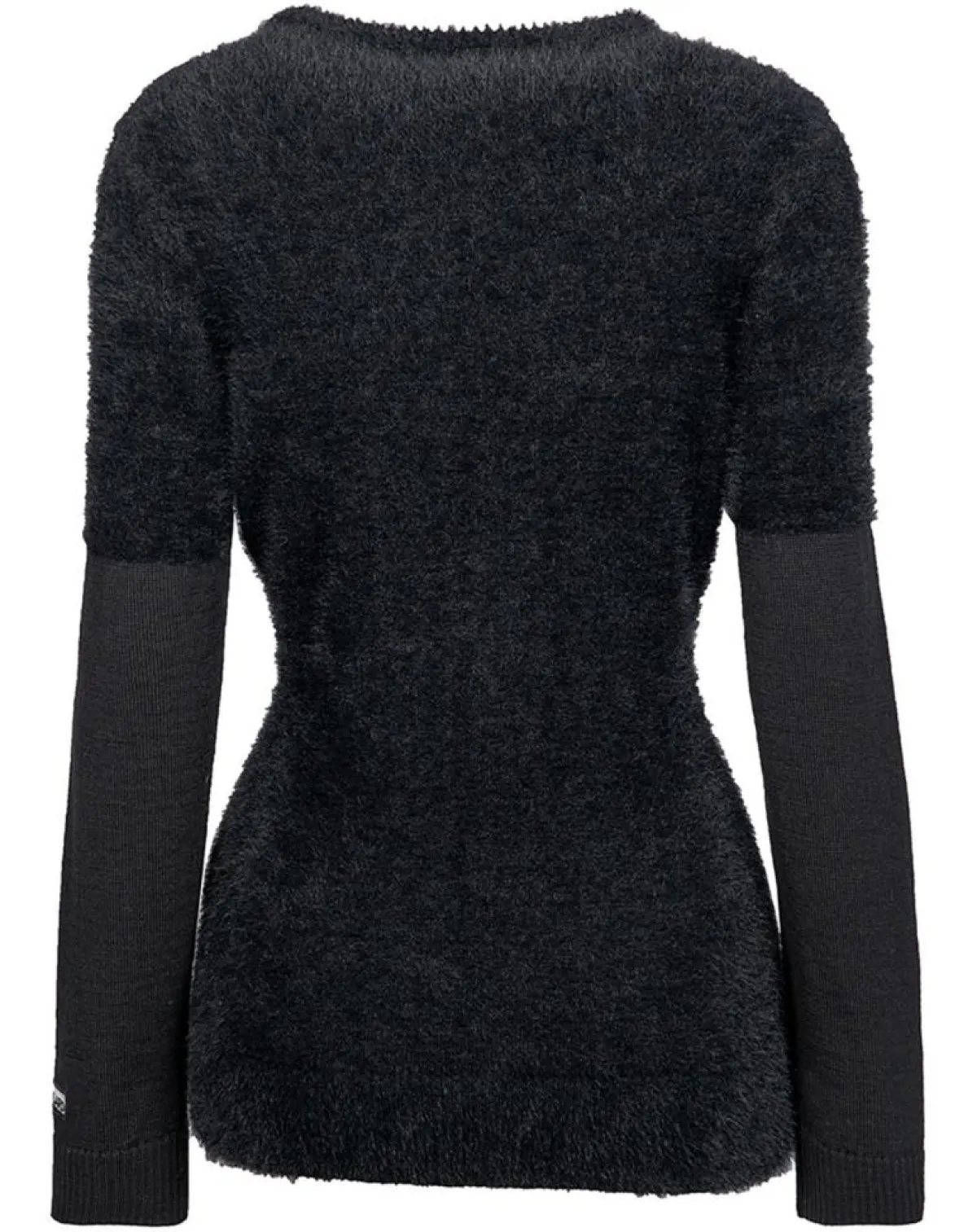 Ce pull en laine pour femme allie chaleur douillette et confort exceptionnel grâce à ses poils longs soyeux