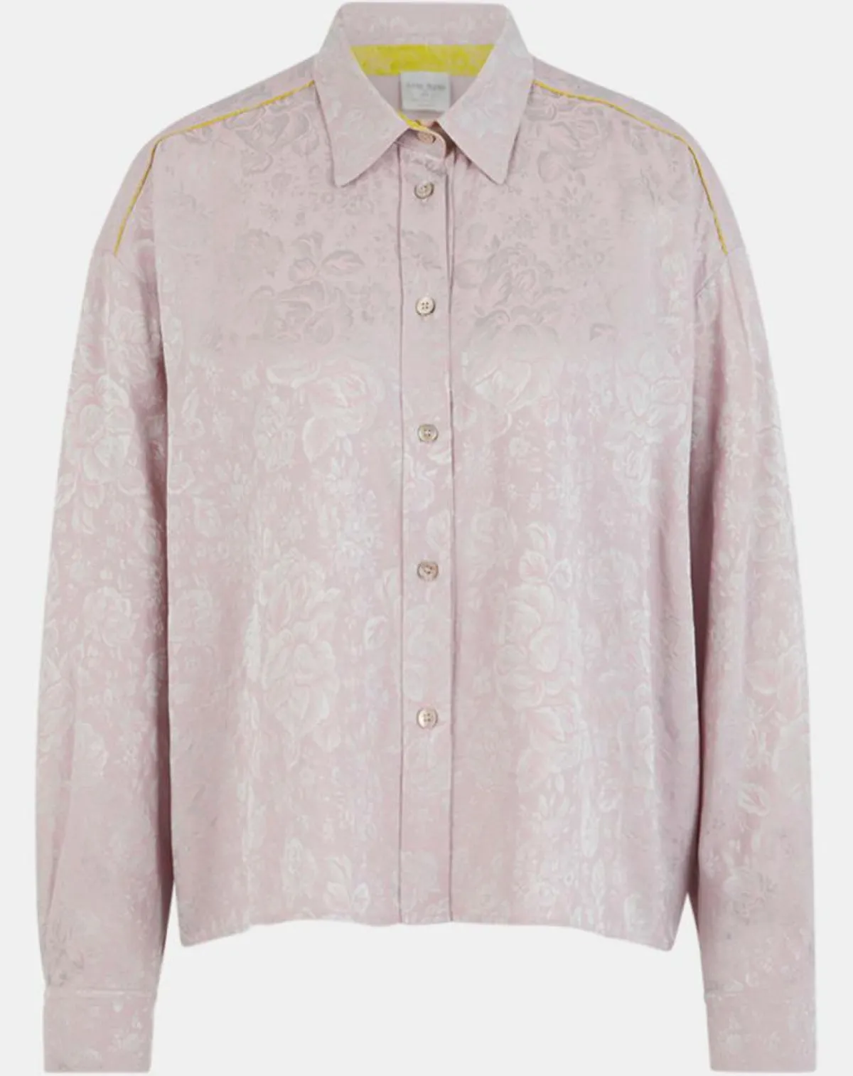 Cette chemise ample fluide Forte_Forte en jacquard floral, est munie d’un col classique, de manches longues, d’une fermeture boutonnée, d’un pli d’aisance au dos et d’une base légèrement arrondie.