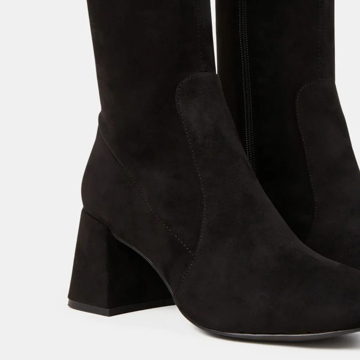 Elles présentent un bout en amande, une fermeture zippée sur le côté ainsi qu’un talon large.