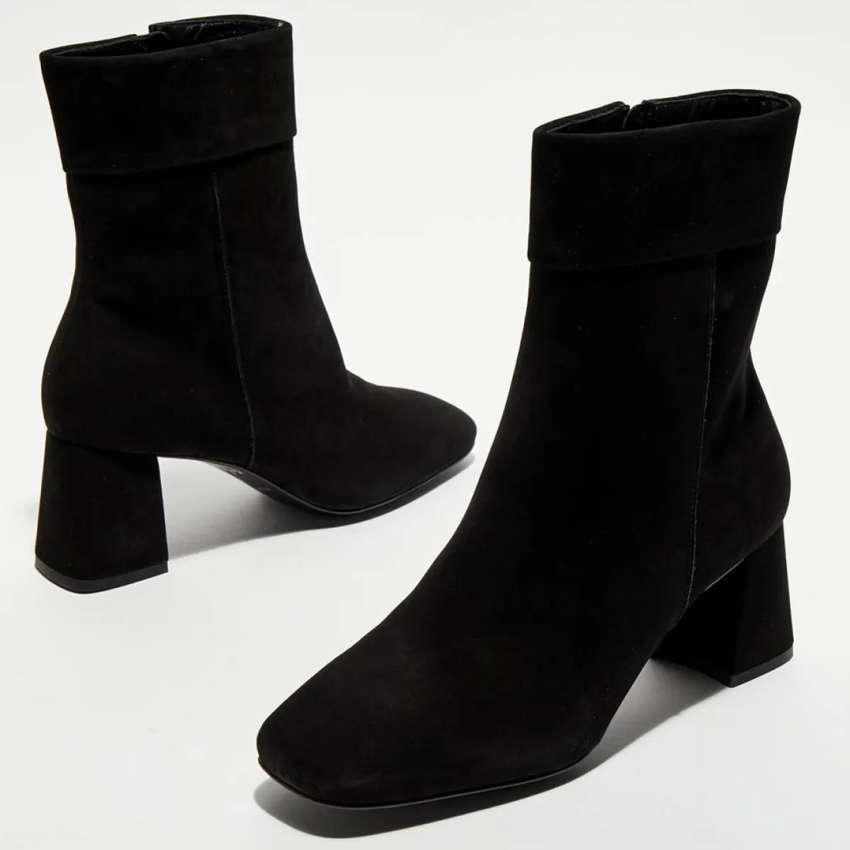 Ces bottines Galeries Lafayette sont confectionnées en cuir de vachette lisse ou de chèvre velours selon le modèle.