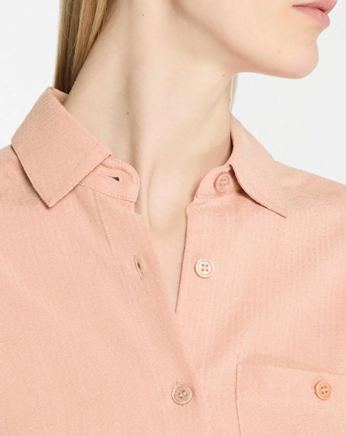 Cette chemise ample Galeries Lafayette composée de coton à fines rayures contrastantes ou ton sur ton, est munie d’un col classique, de manches longues, d’une fermeture boutonnée, d’une poche poitrine et d’une base arrondie.