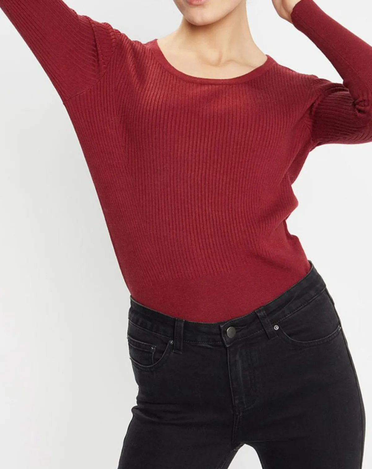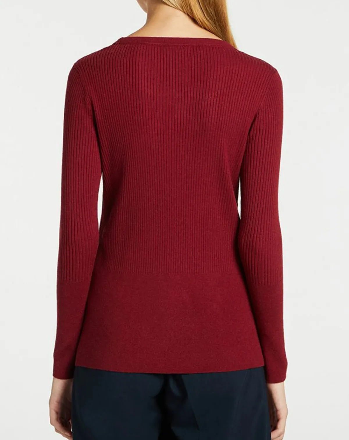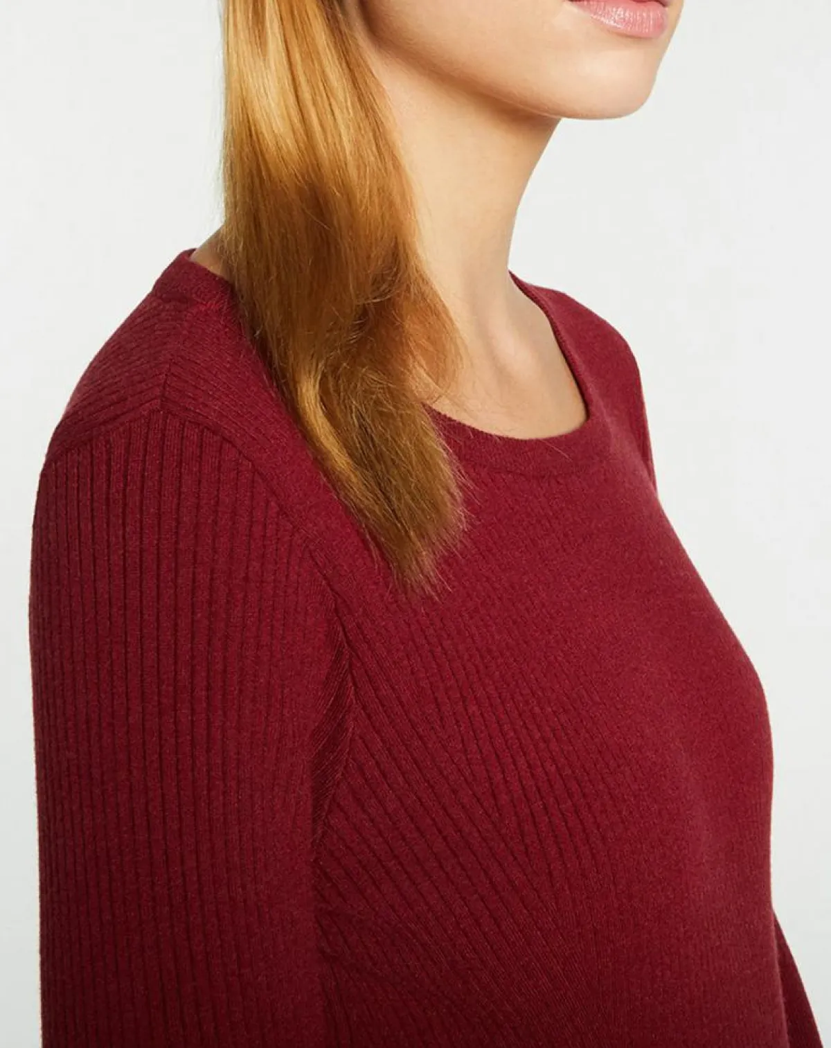 Ce pulll ajusté Galeries Lafayette en maille stretch côtelée se pare d’un col rond et de manches longues.
