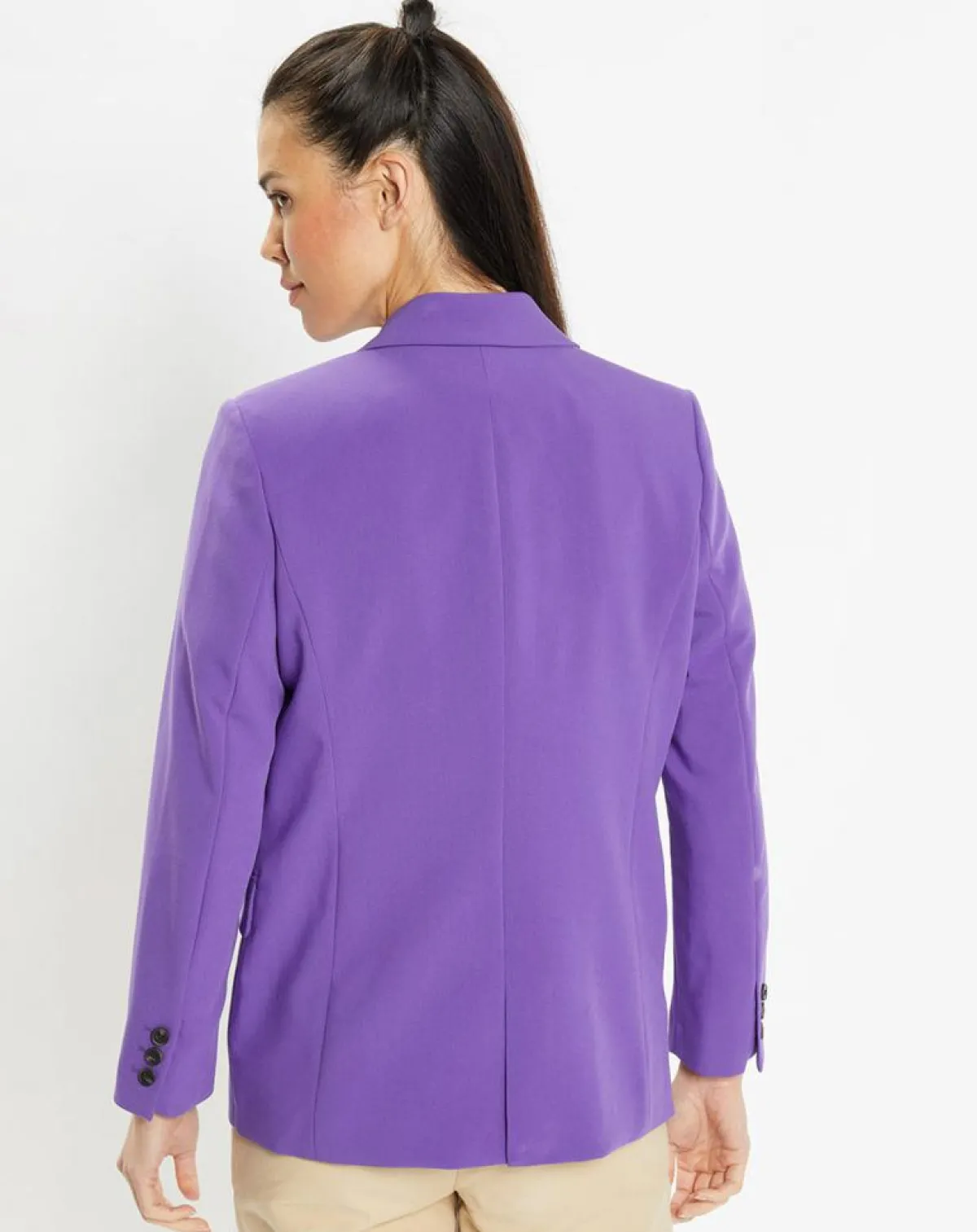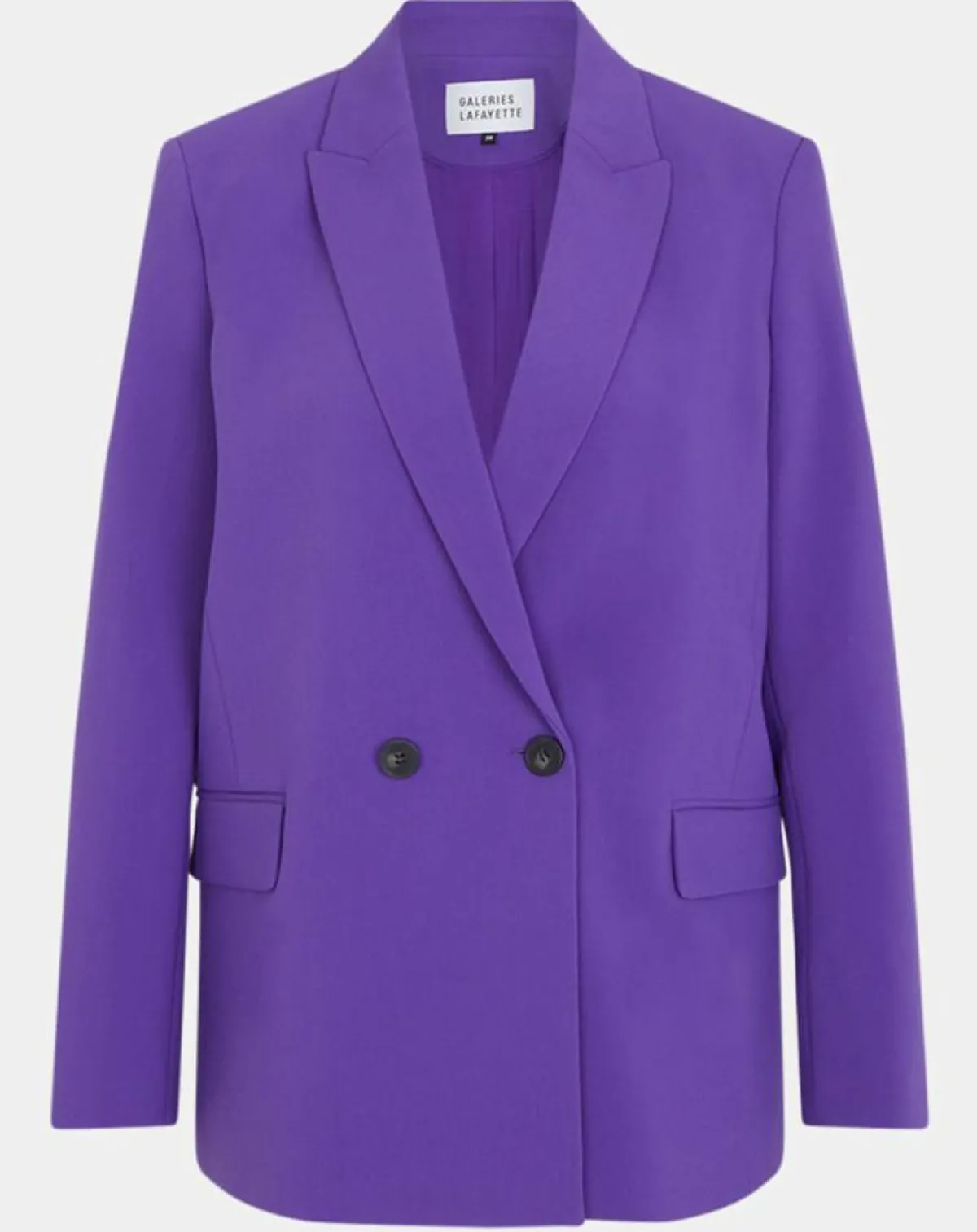 Cette veste tailleur Galeries Lafayette est munie d’un col cranté, d’un double boutonnage et de poches.