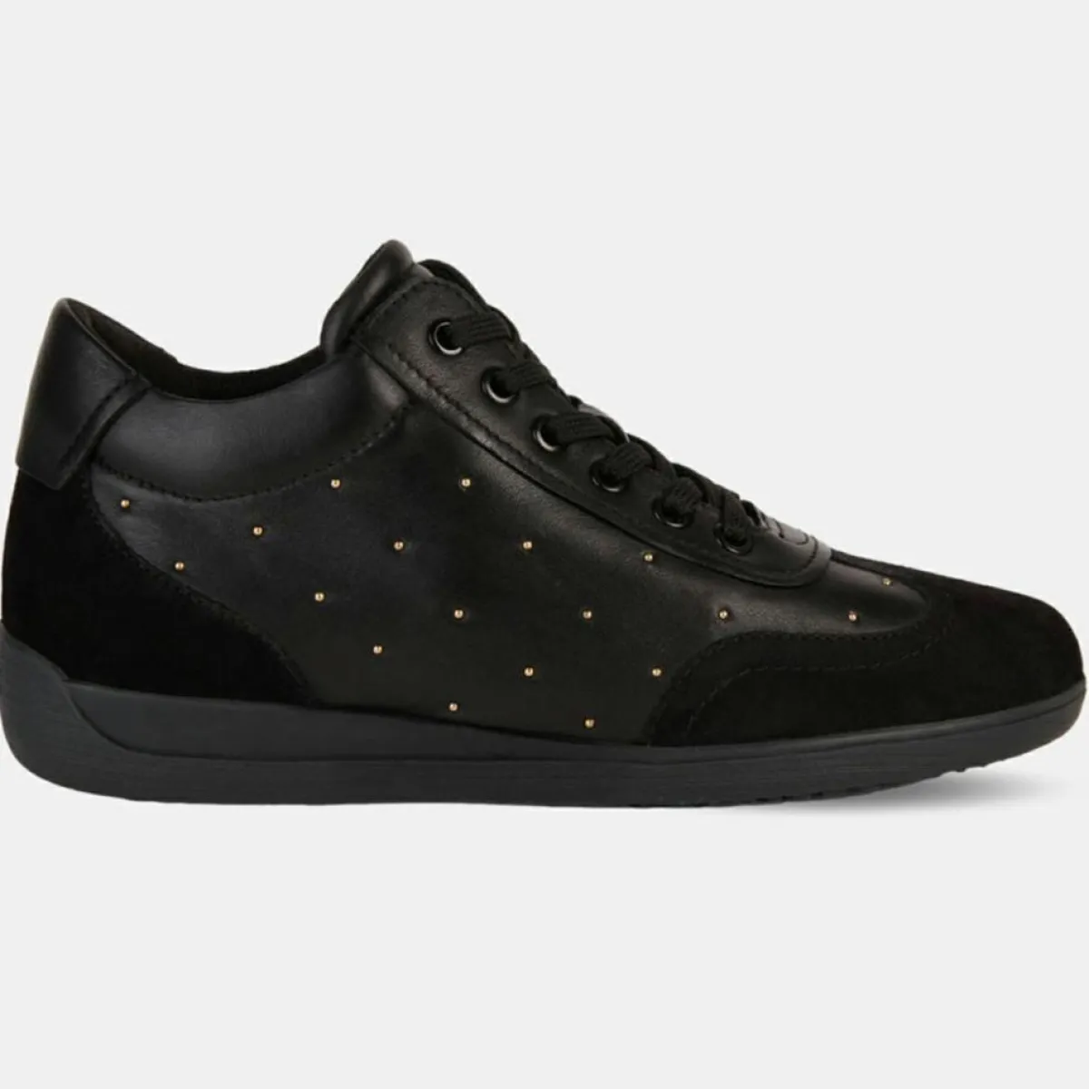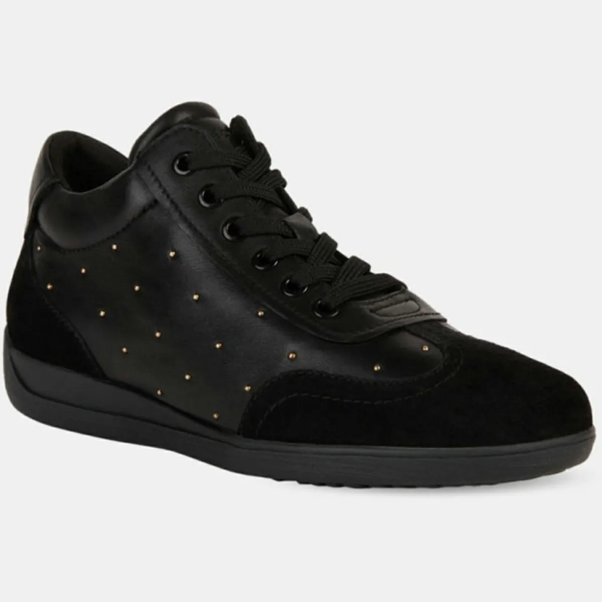 Ces baskets basses Geox en cuir de vachette nappa et suédé présentent une fermeture lacets et des clous décoratifs.