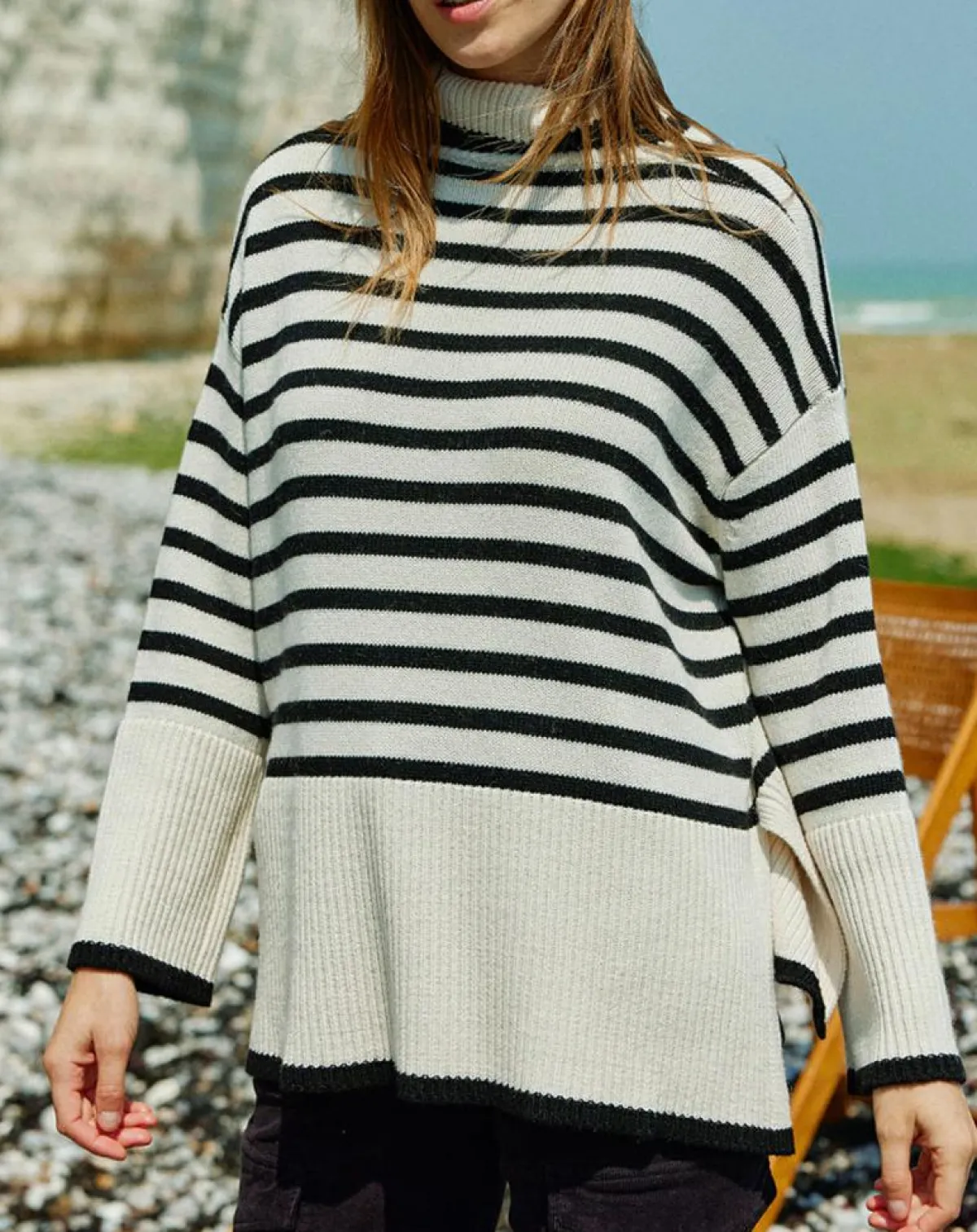 Oversize, larges côtes écrues sur le bas des manches et du corps