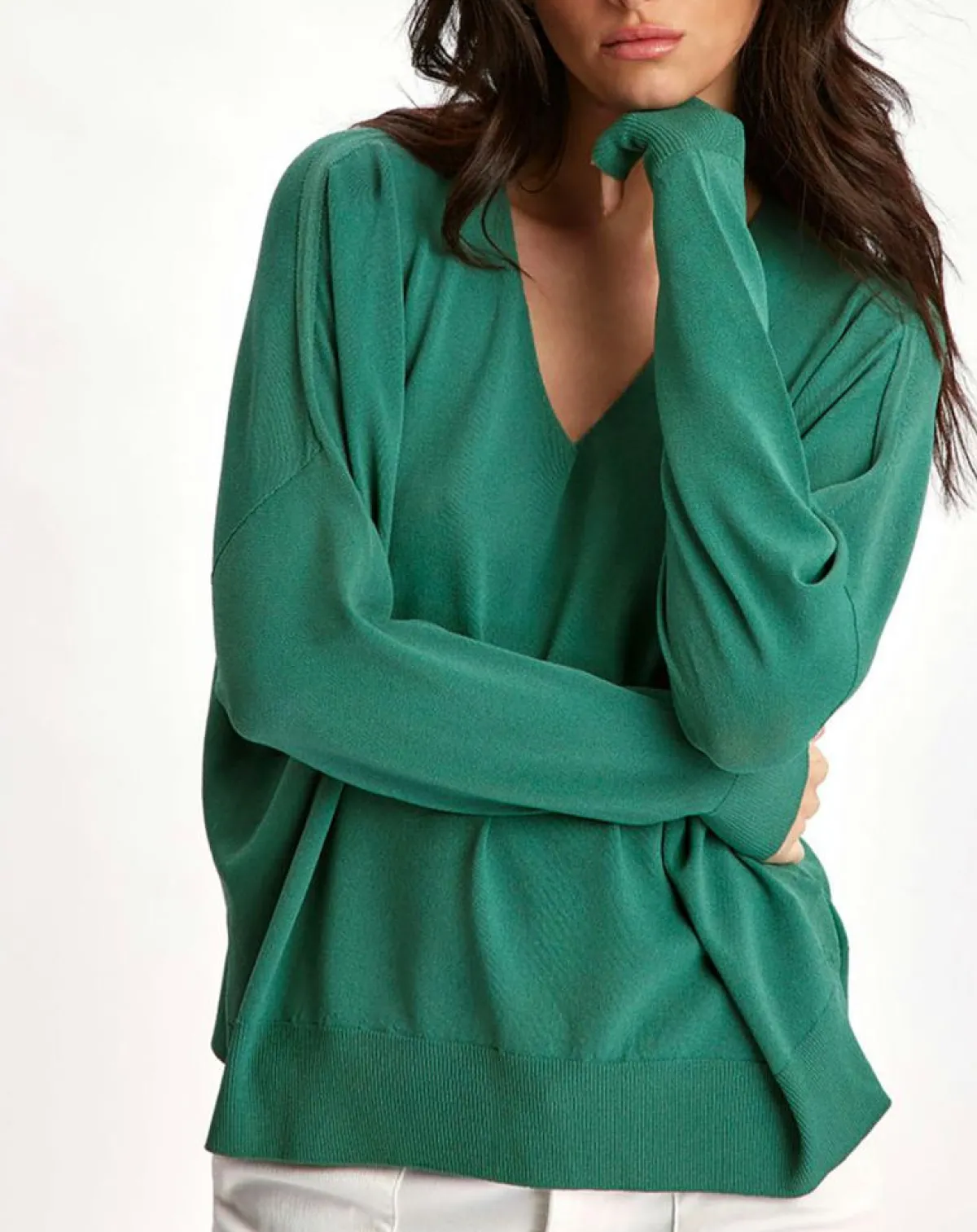 Pull encolure V en maille viscose/polyamide ultra légère
