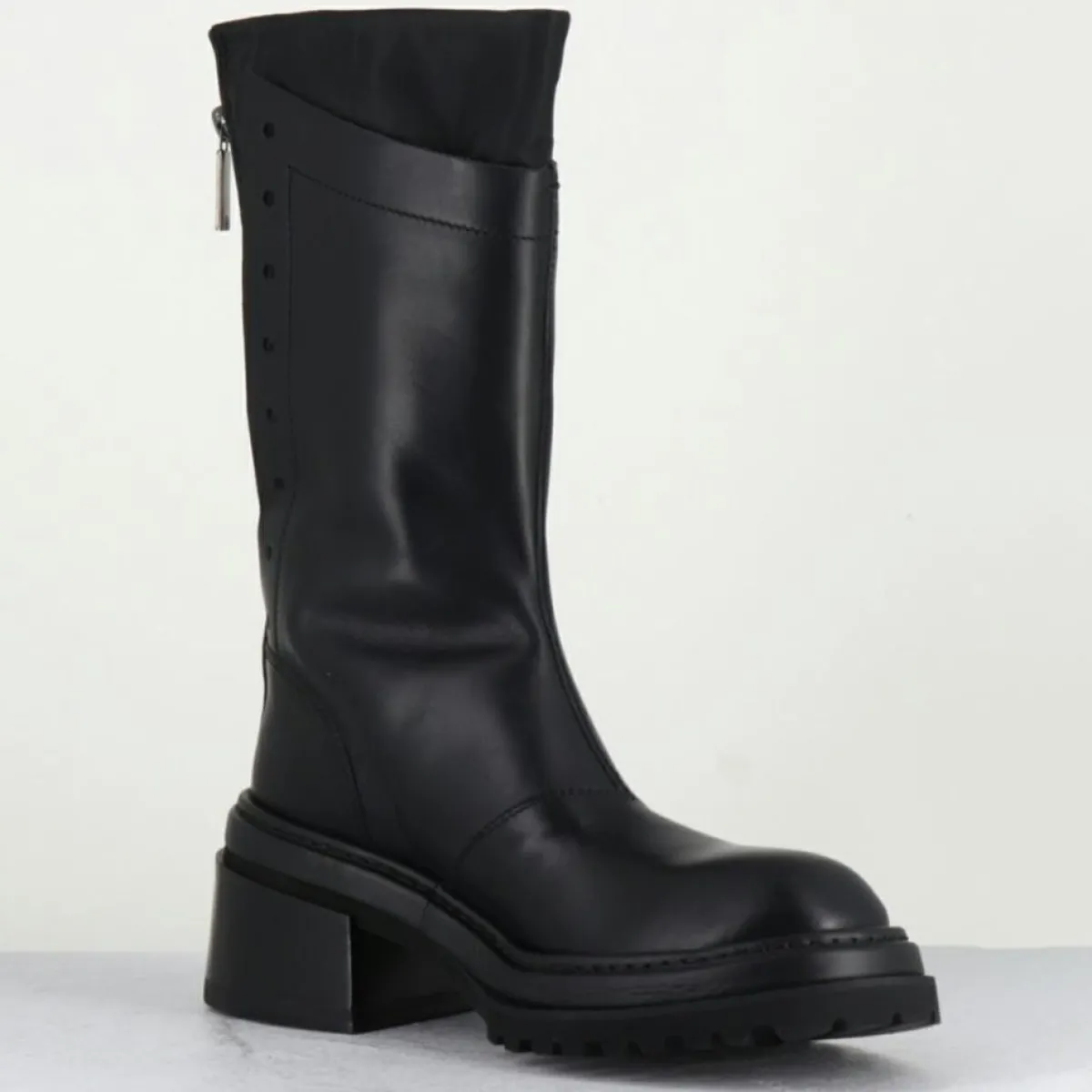 Montées sur une semelle épaisse en gomme et un talon bloc en cuir.