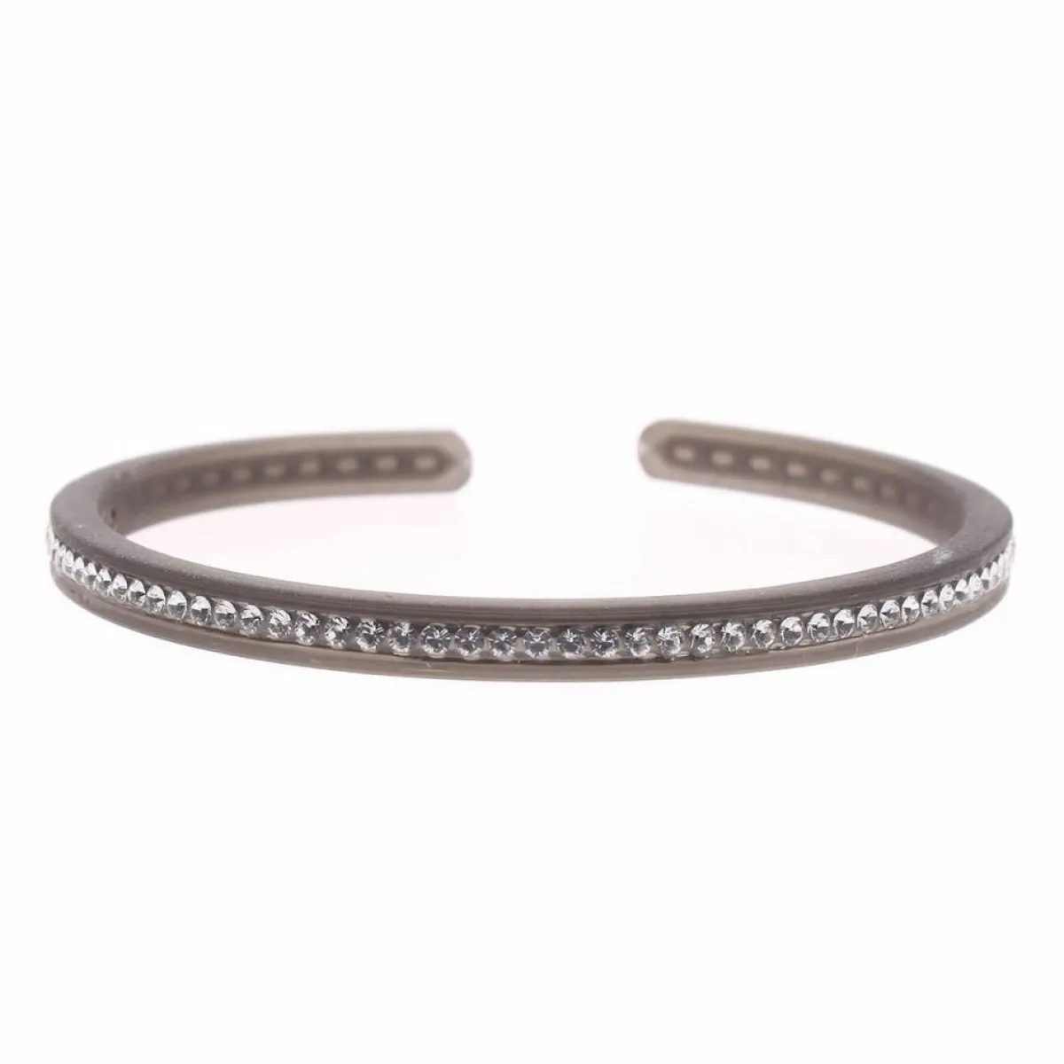 Orné par 1 rang de cristaux de haute qualité, le jonc gomme 1 rang s’ajuste à tous les poignets, il est facile à mettre et se porte aussi bien seul qu’avec d’autres bracelets !
