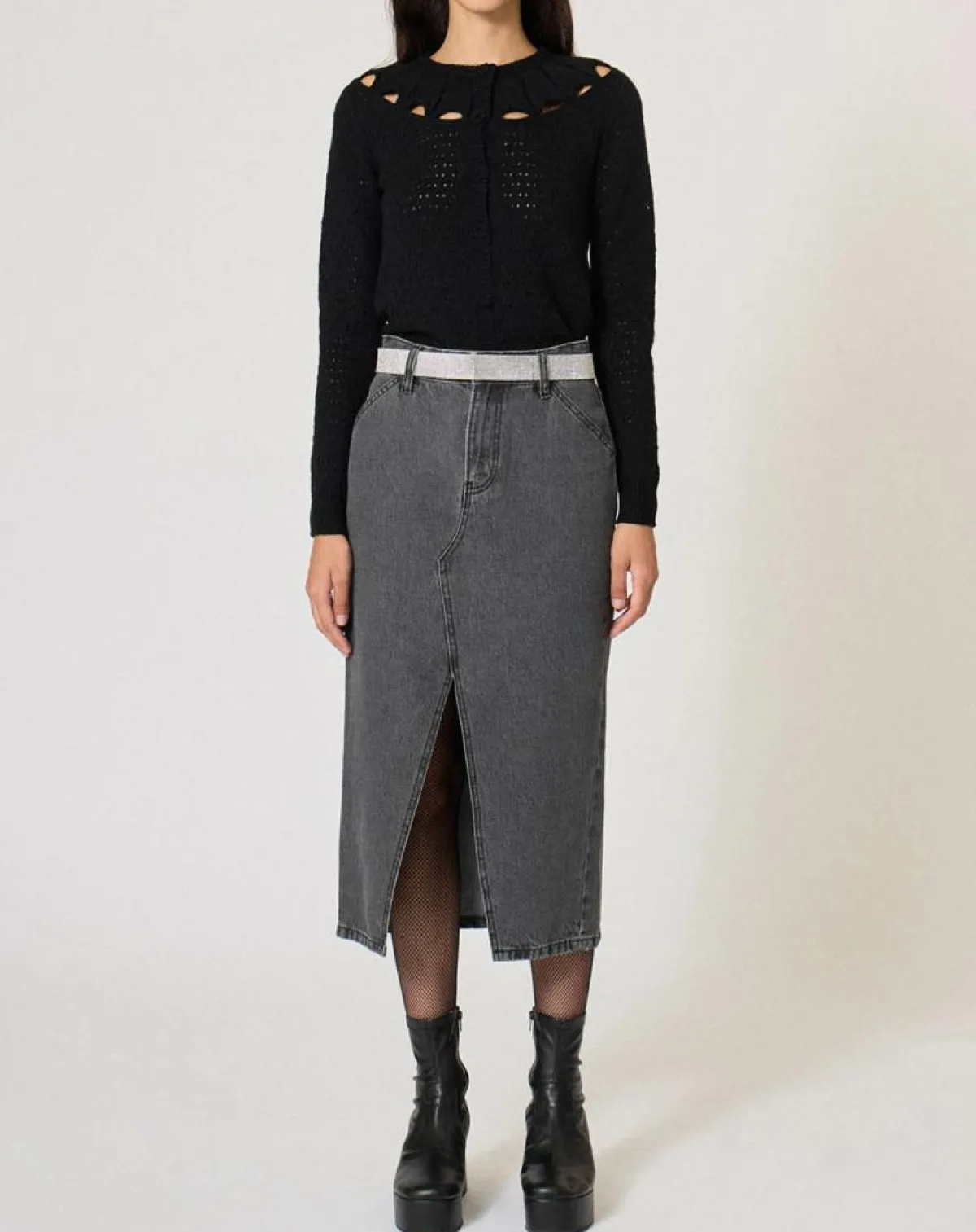 Blue Wellford Vestes, Blousons|Veste en Cuir Alazeia gris foncé