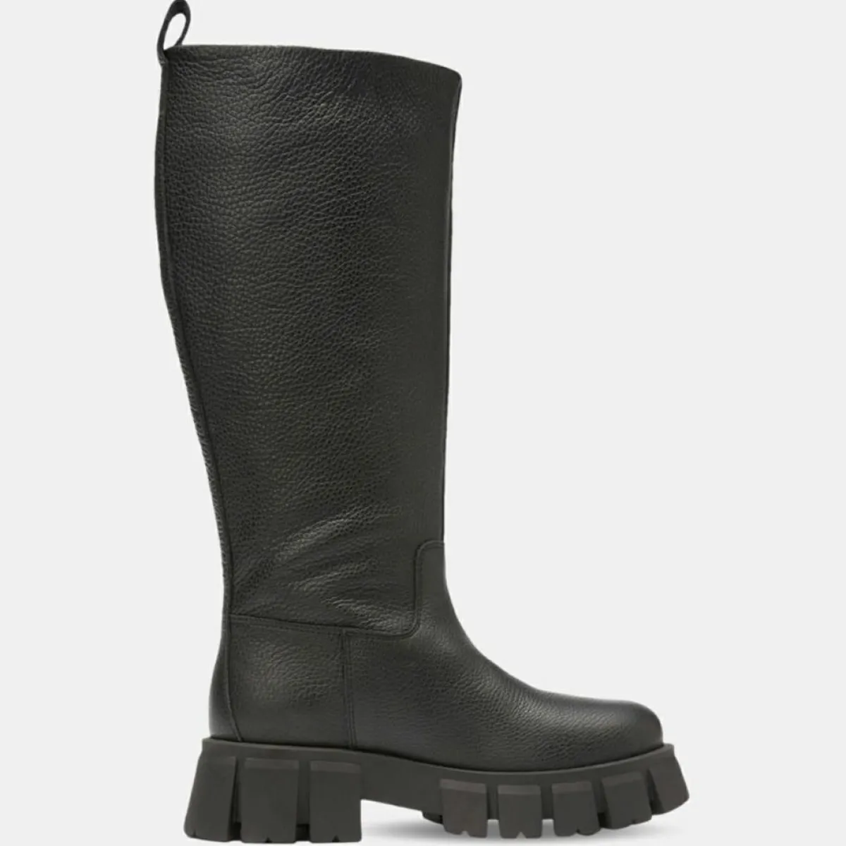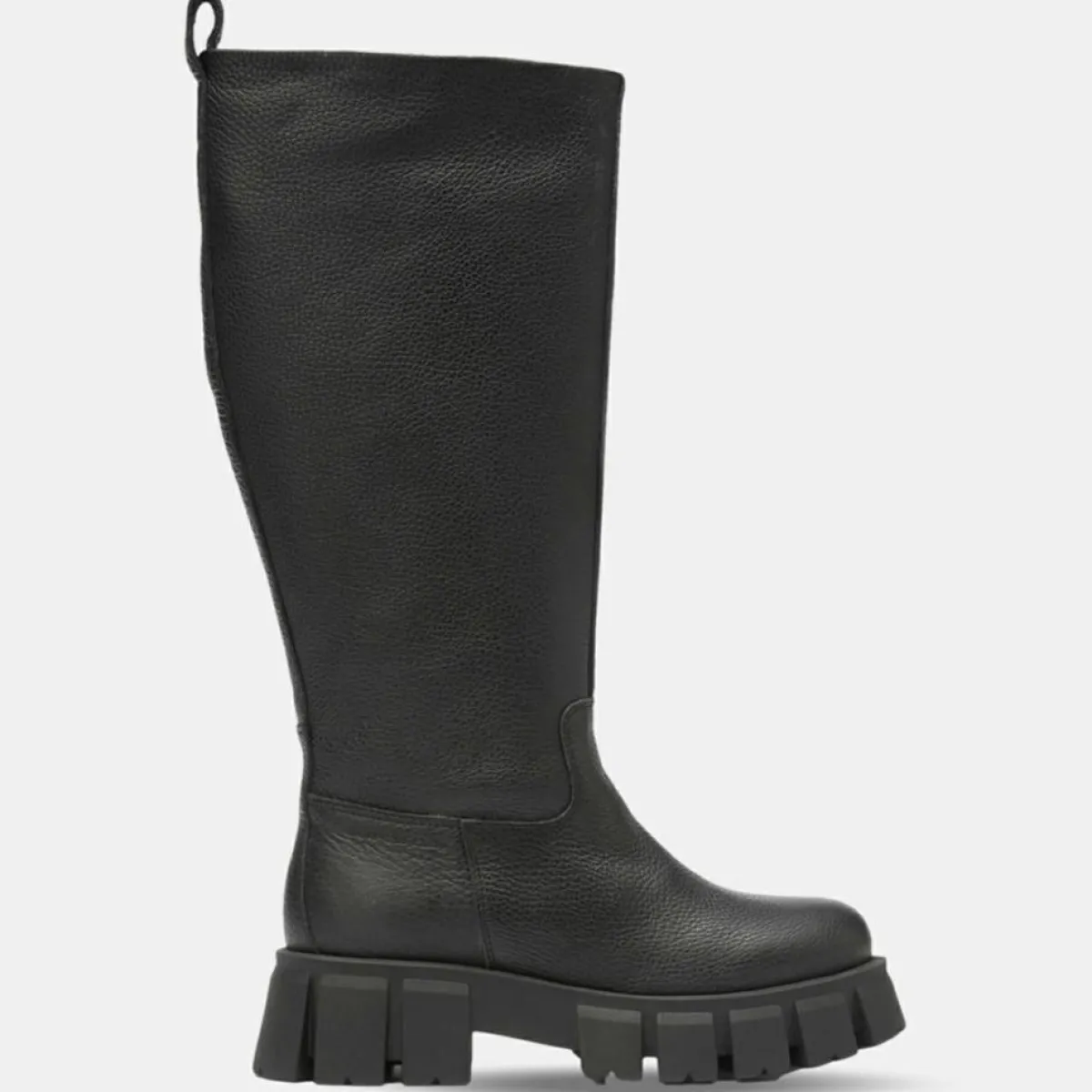 Incontournables en cette prochaine saison hivernale : les chunky boots ! Modèle en cuir de vachette foulé et finement texturé, issu de tanneries certifiées par LWG.