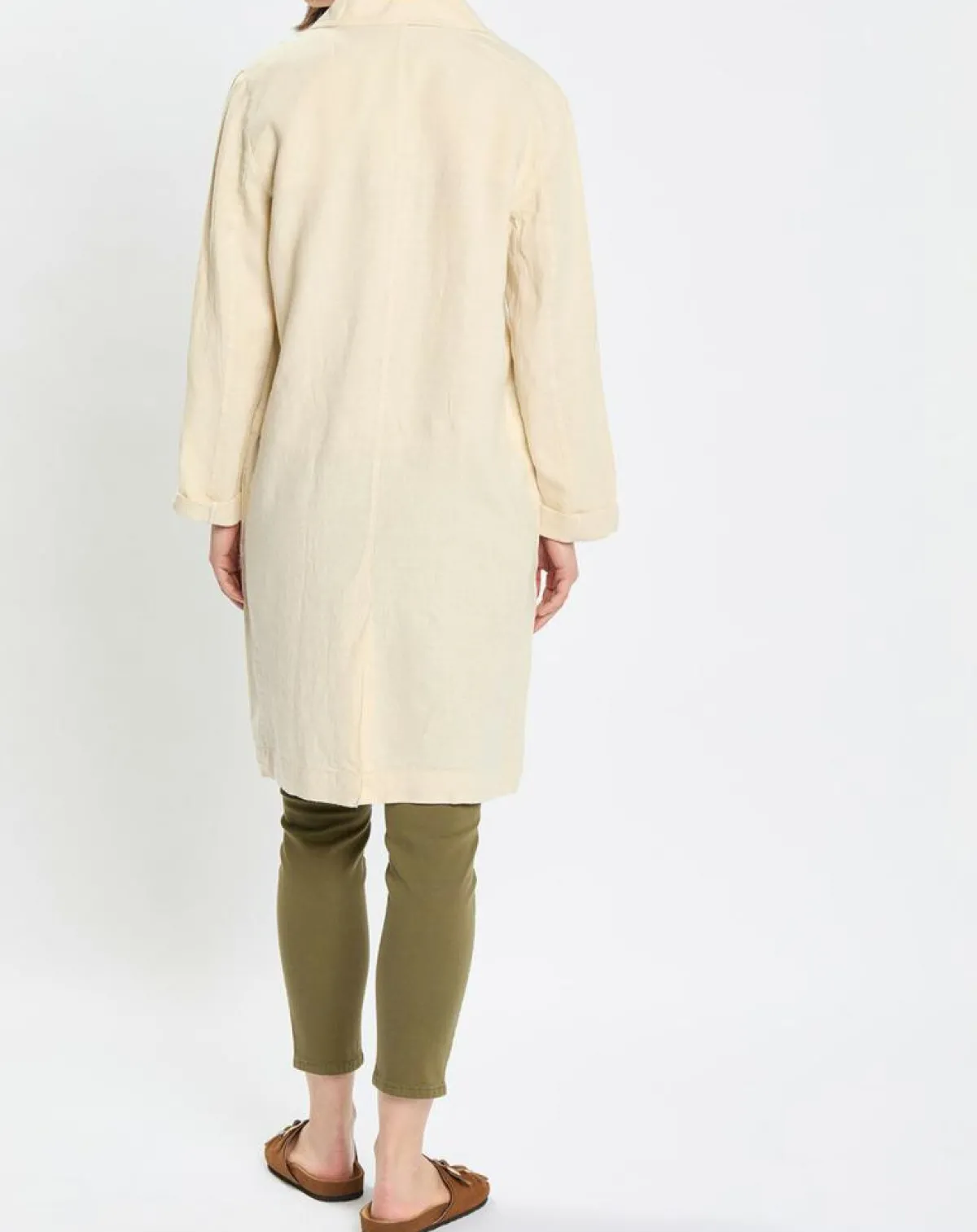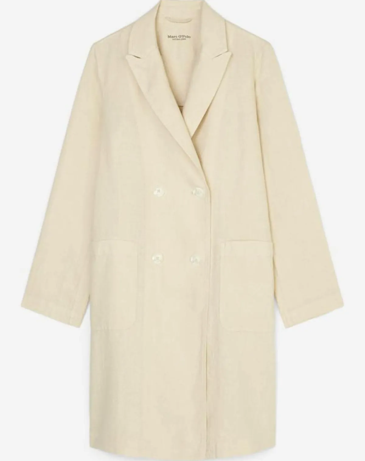 Bien que créé pour cette saison, il est conçu pour durer bien plus longtemps : le manteau croisé en lin super décontracté.