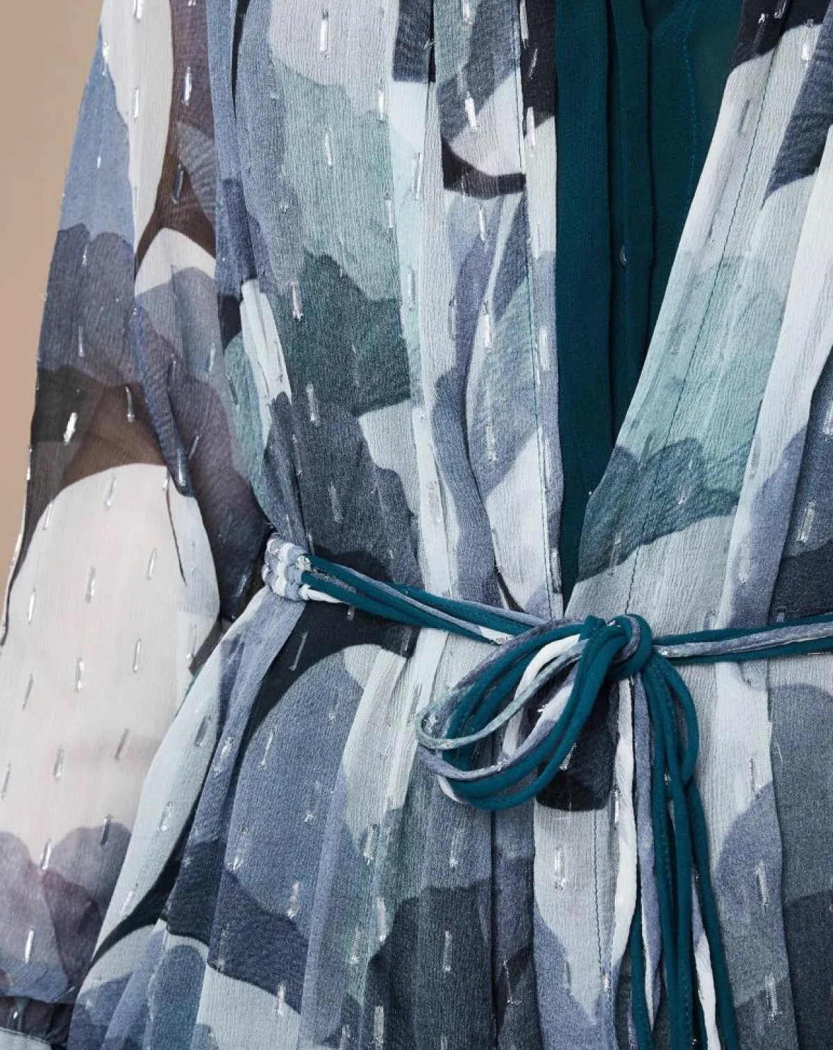 Imprimé floral et fil irisé sur l’ensemble