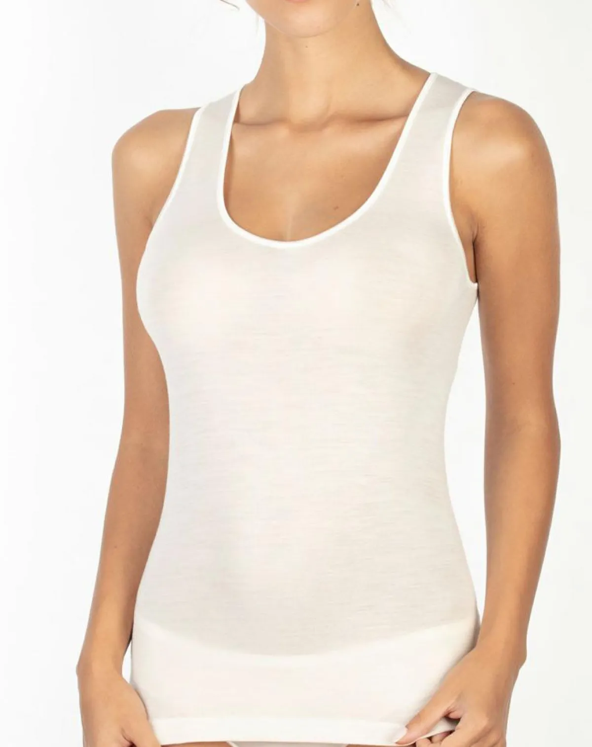 Mare Tops Et Blouses|Débardeur bord satin en Laine & Soie ivoire