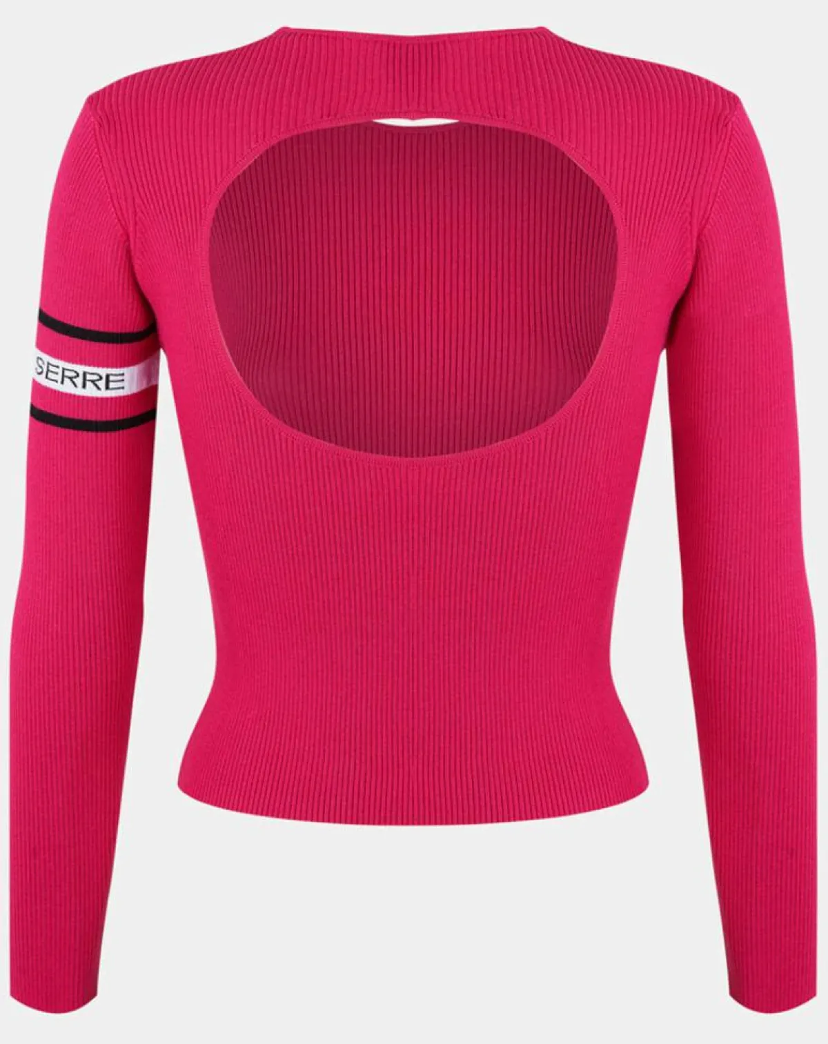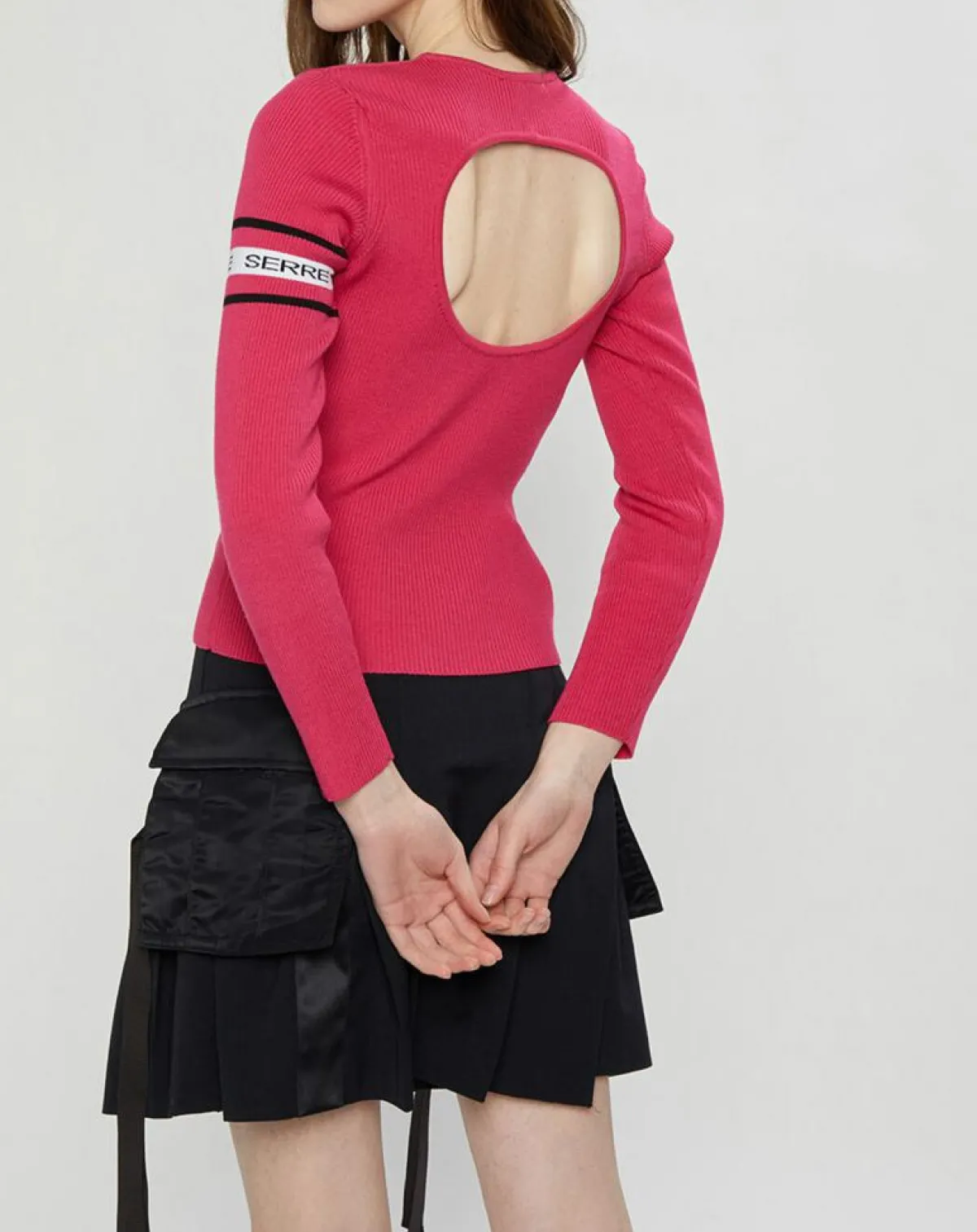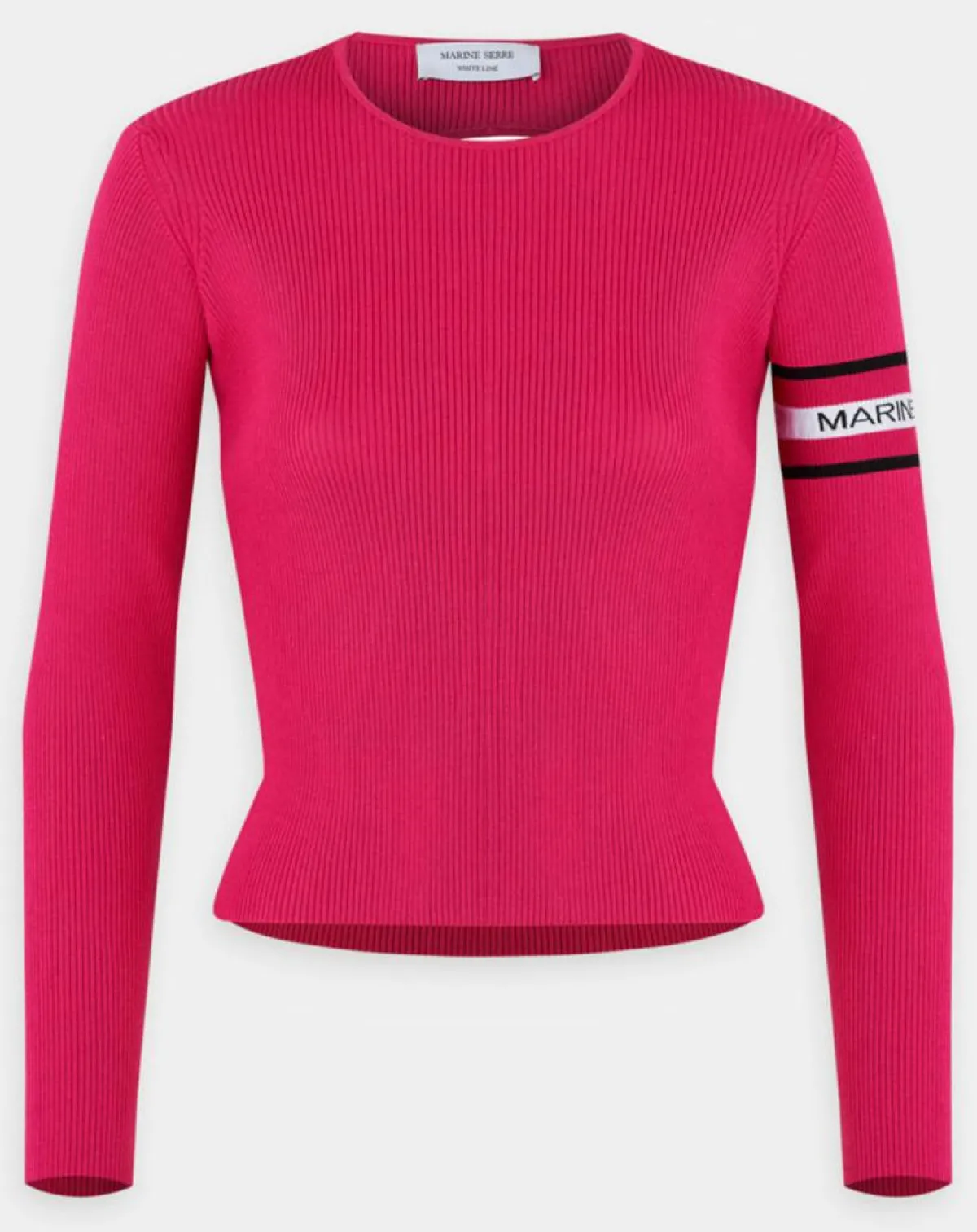 Ce pull ajusté Marine Serre composé de laine présente un col rond, des manches longues, une base évasée et un fini côtelé.