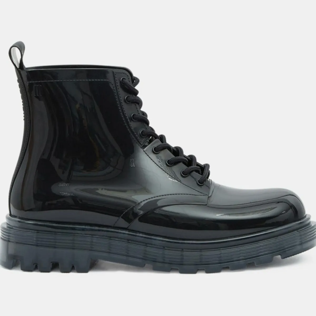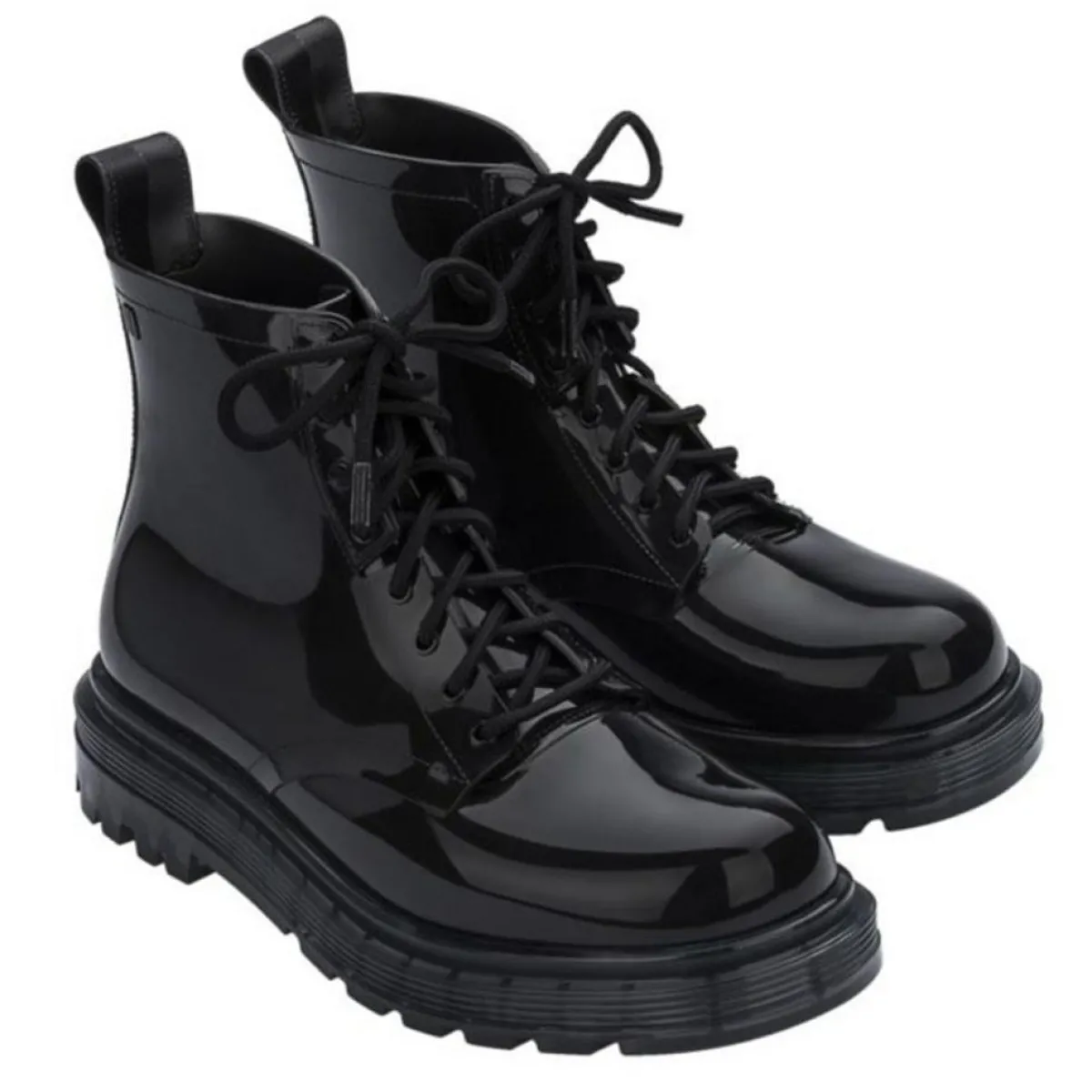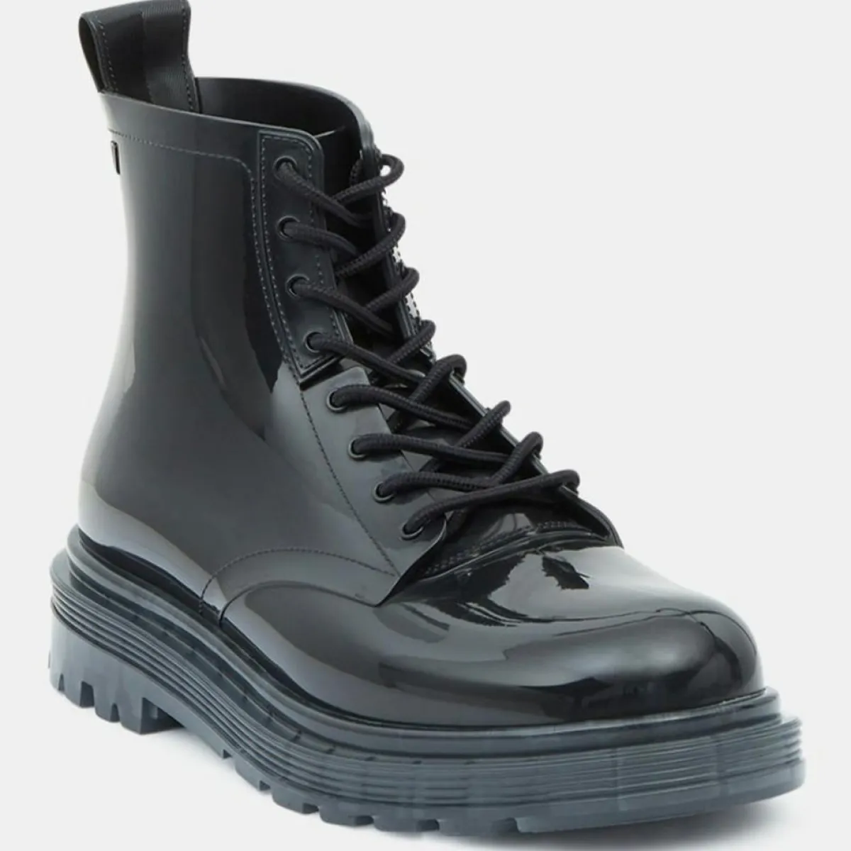 La botte Coturno en PVC melflex est parfaite pour l’automne/hiver grâce à sa matière waterproof et son style rangers réchauffant le pied parfaitement.