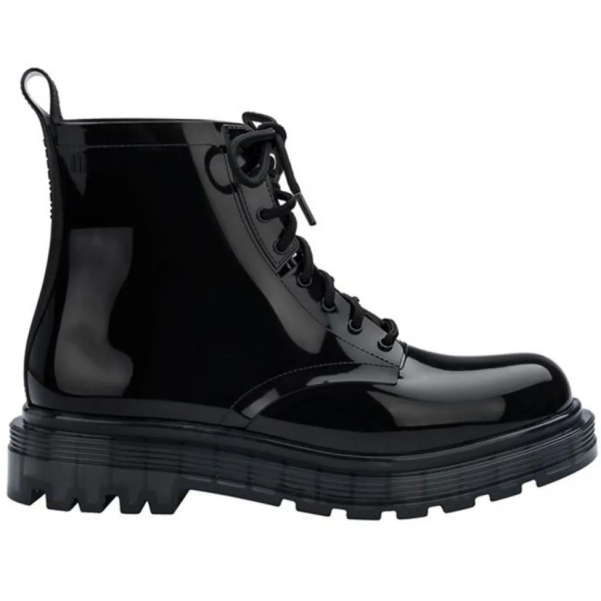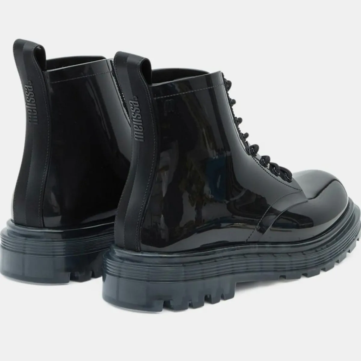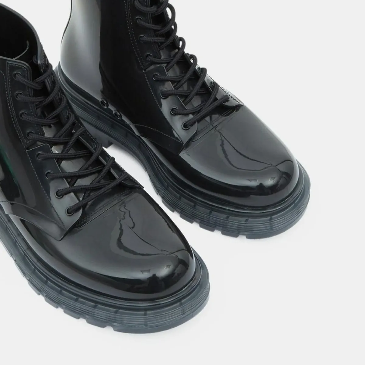 La botte Coturno en PVC melflex est parfaite pour l’automne/hiver grâce à sa matière waterproof et son style rangers réchauffant le pied parfaitement.