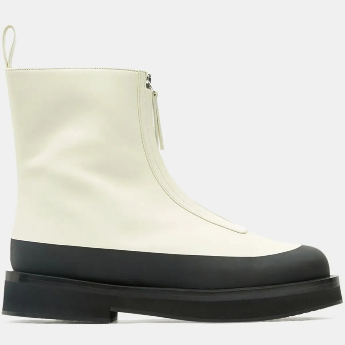 Ces bottines bicolores Neous confectionnées en cuir lisse, présentent un bout arrondi, une fermeture à glissière sur l’avant ainsi qu’un tirant d’aide à l’enfilage sur l’arrière.