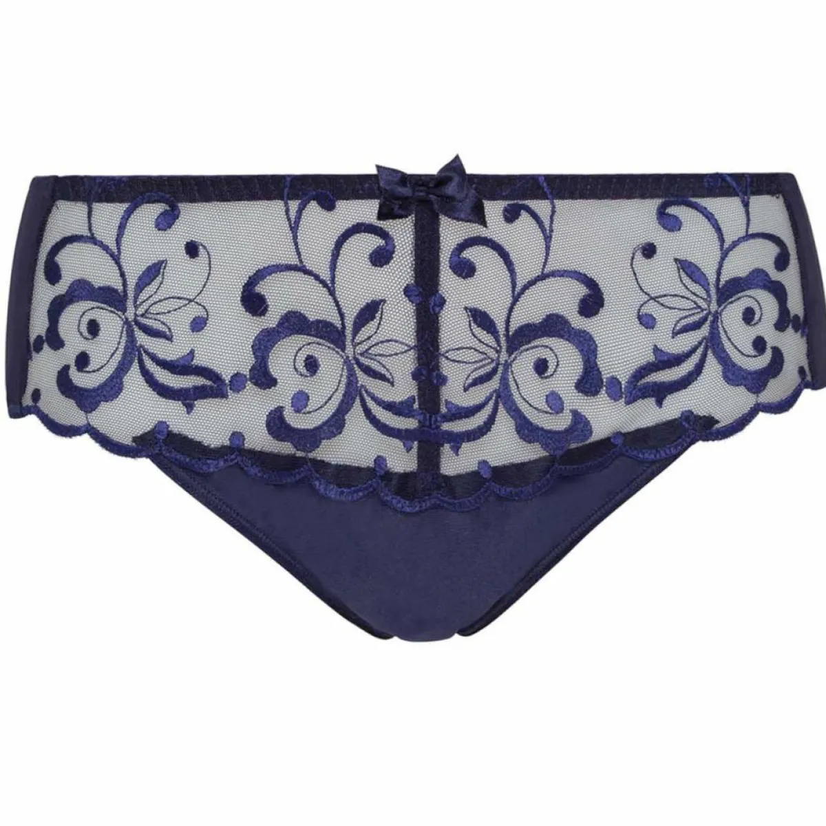Invisible sous vos tenues grâce à ses élastiques plats, cette culotte midi bleu marine Essential Elegance Broderie est un indispensable de nos sous-vêtements