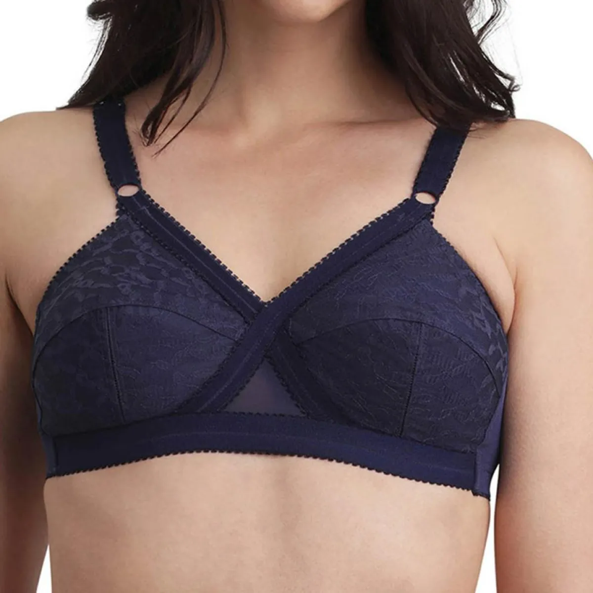 L’une des références par excellence de la maison Playtex® : le soutien-gorge sans armatures de la gamme Coeur Croisé 556 a tout le savoir-faire historique du corsetier. Le système Coeur Croisé maintient la poitrine parfaitement en place. Les bretelles larges, l’entre-bonnet élargi et la découpe dos nageur sont également conçus pour un maximum de maintien. Sa matière dense et ses bonnets emboîtant recouverts de dentelle ton sur ton lui apportent élégance et allure.