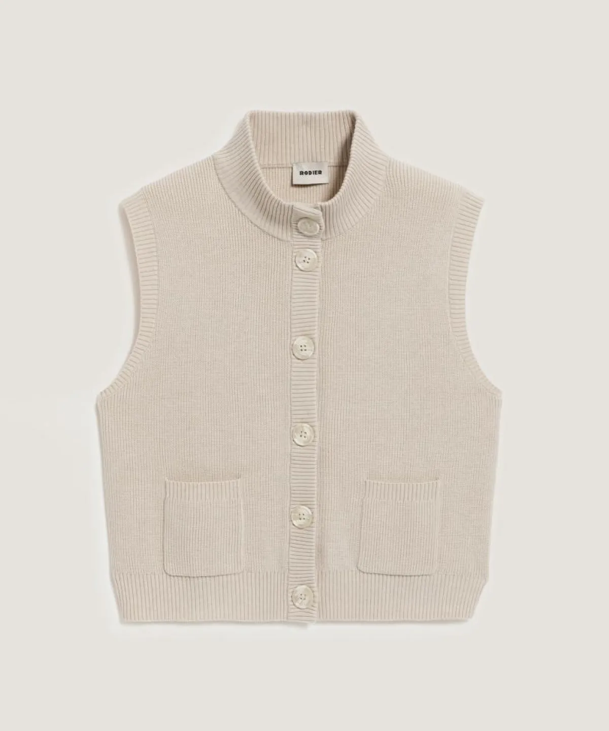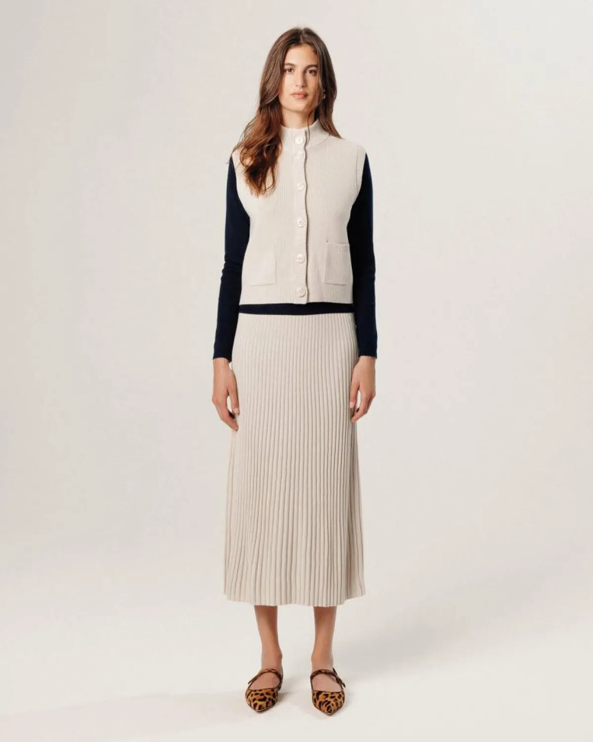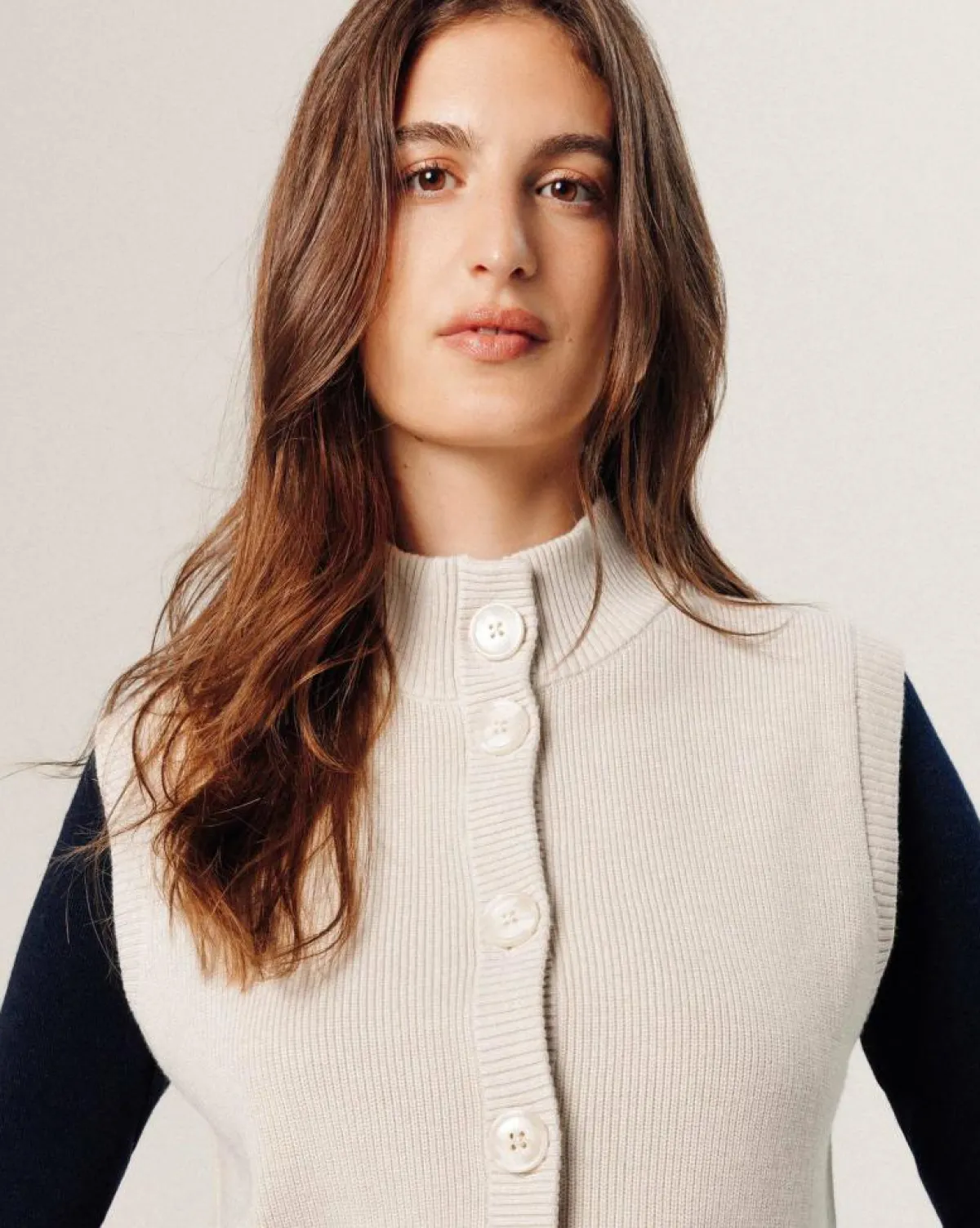 Mare Tops Et Blouses|Débardeur bord satin en Laine & Soie ivoire