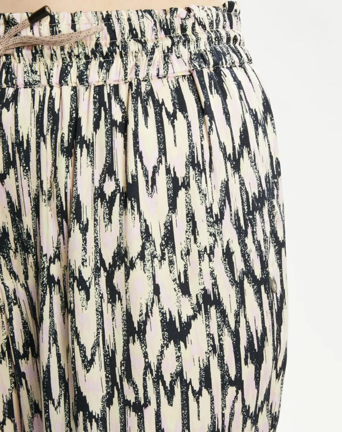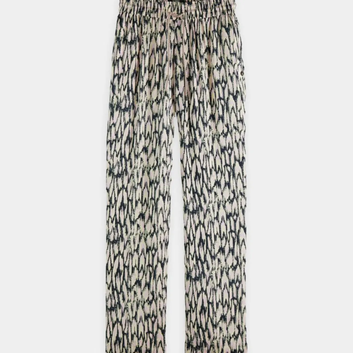 Ce pantalon fluide légèrement ajusté Scotch & Soda à imprimé fantaisie est muni de 2 poches prises dans la couture, d’une ceinture élastique avec lien de serrage et de 2 poches sur l’arrière