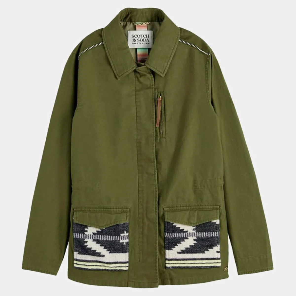 Cette veste droite style militaire Scotch & Soda en coton est munie d’un col classique, de manches longues ornées d’un empiècement fantaisie aux coudes, d’une fermeture sous rabat, de 3 poches sur l’avant dont 2 à rabat et une poitrine