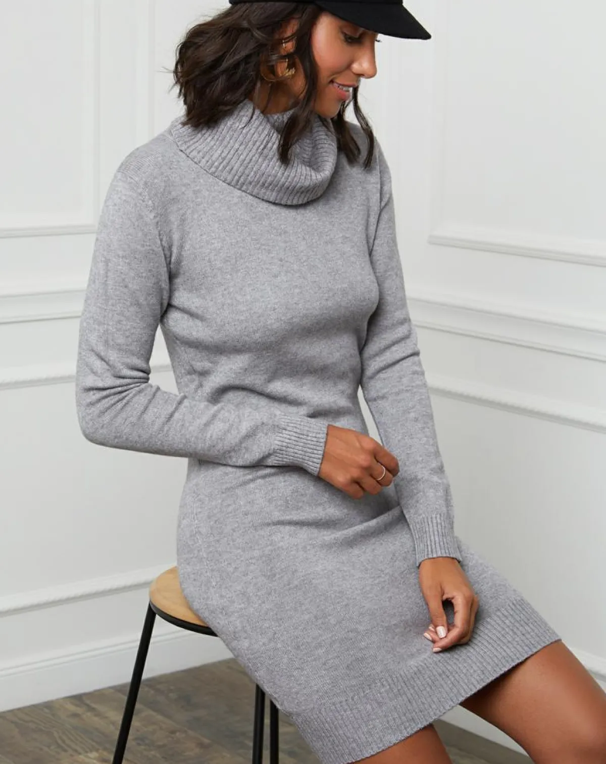 Robe en maille fine, manches longues, col roulé