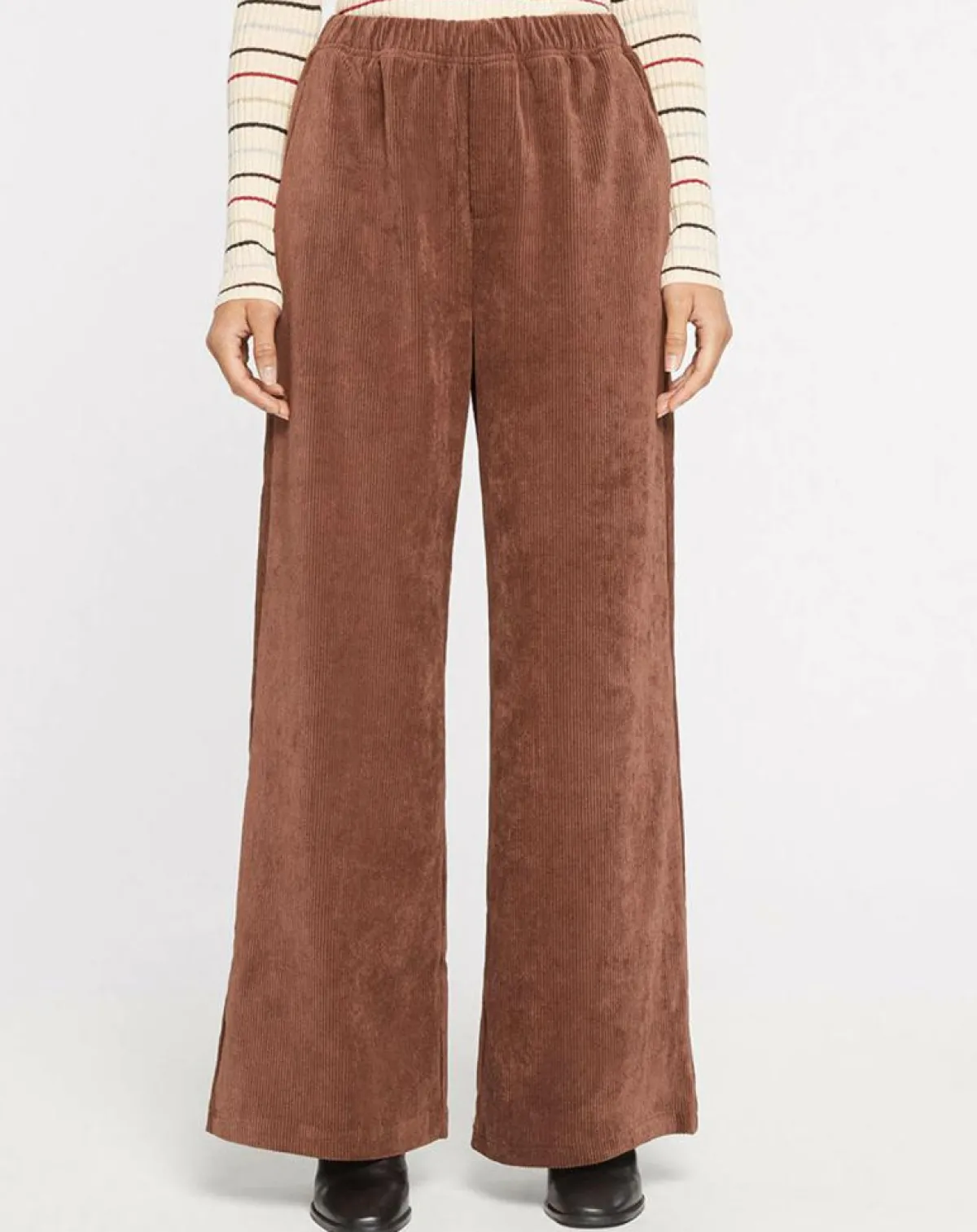 Ce pantalon large Suncoo en velours côtelé et muni d’une taille élastiquée et de poches.