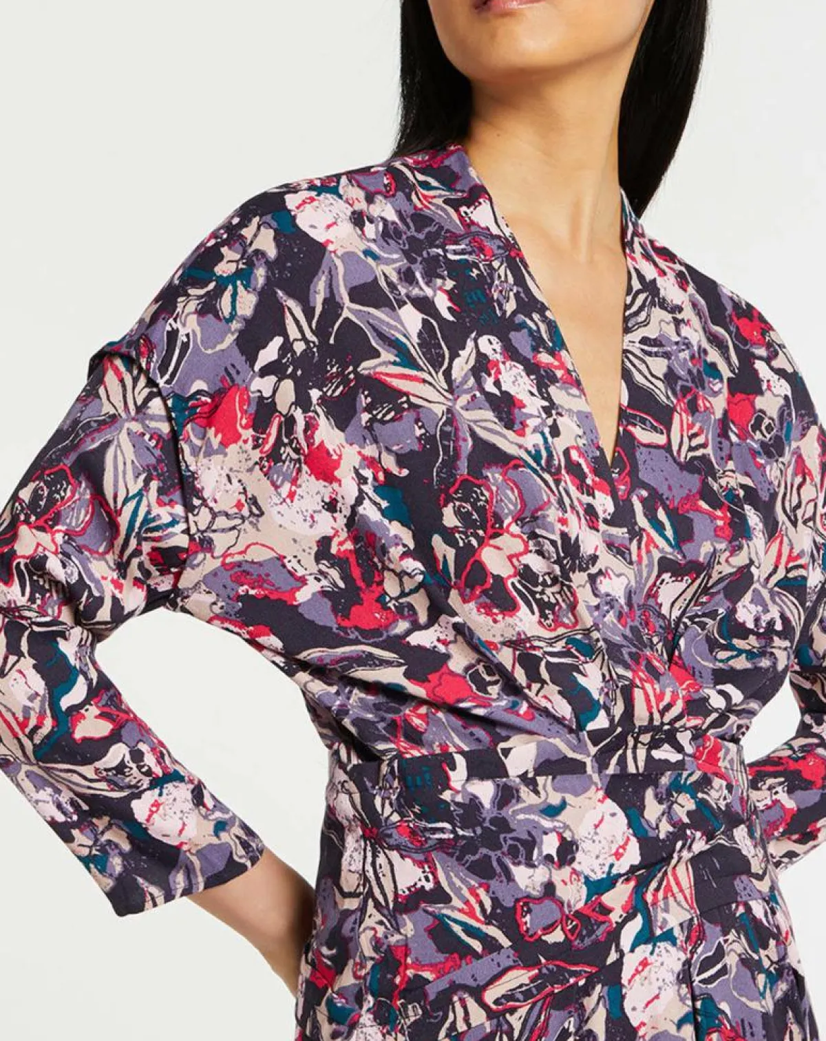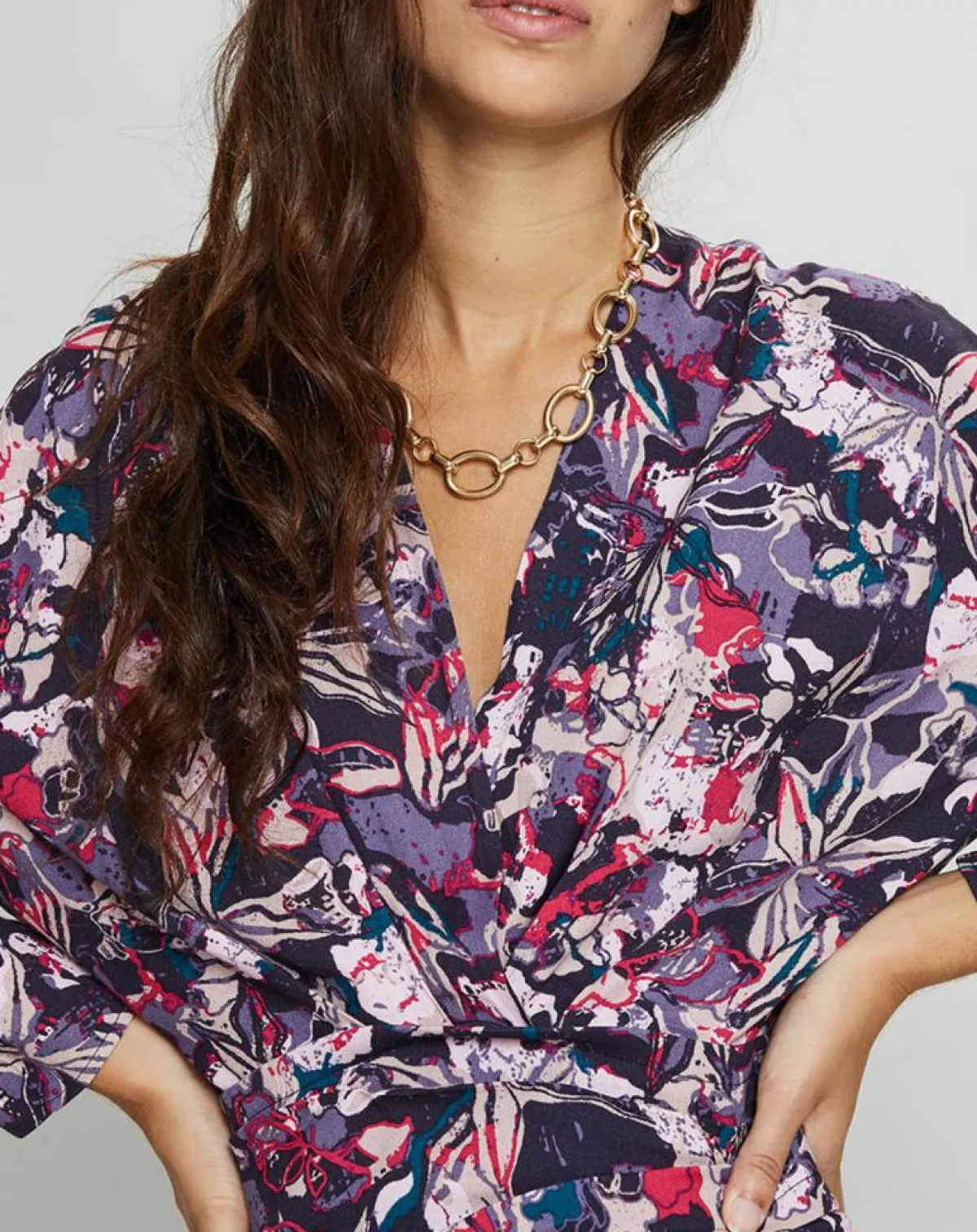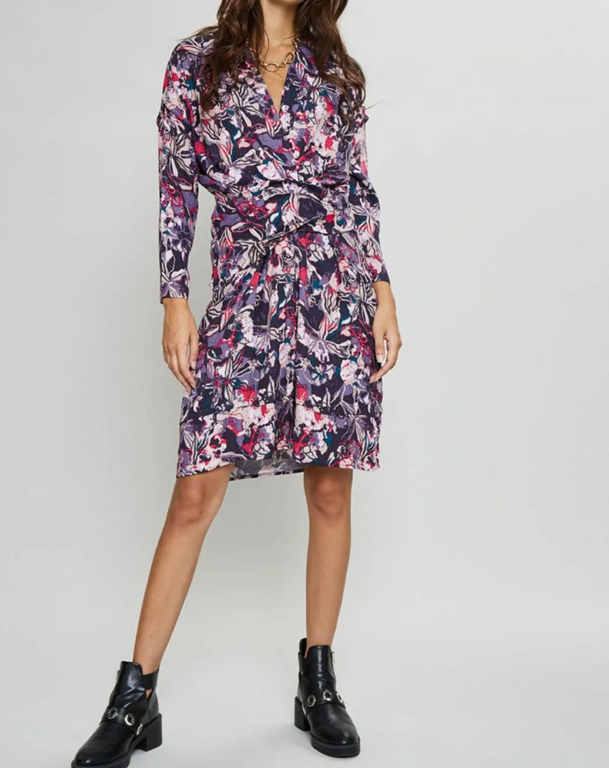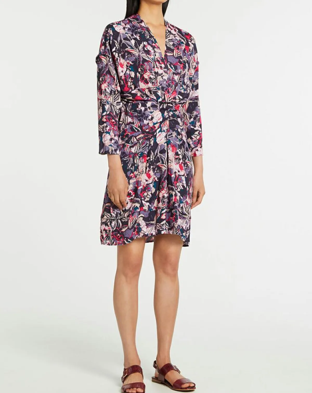 Cette robe courte fluide fantaisie Suncoo se pare d’un décolleté croisé en V à bouton pression, de manches 7/8, d’une taille marquée par un empiècement plissé, d’une fermeture latérale zippée invisible et d’une doublure.